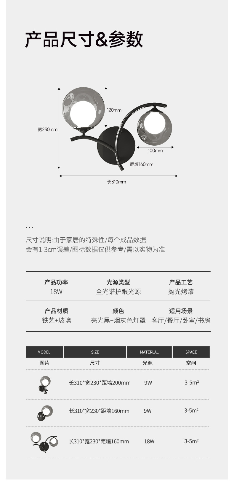 • [풀 스펙트럼 눈 보호] 유형 B 벽 램프 - 길이 12*높이 16*벽 사이 16cm
