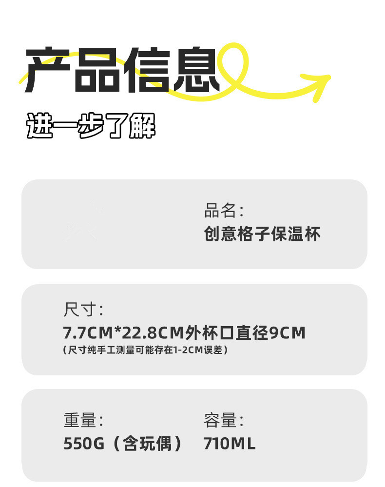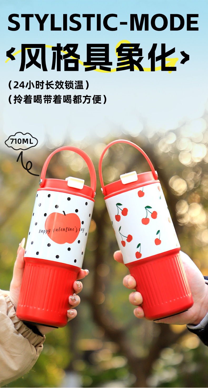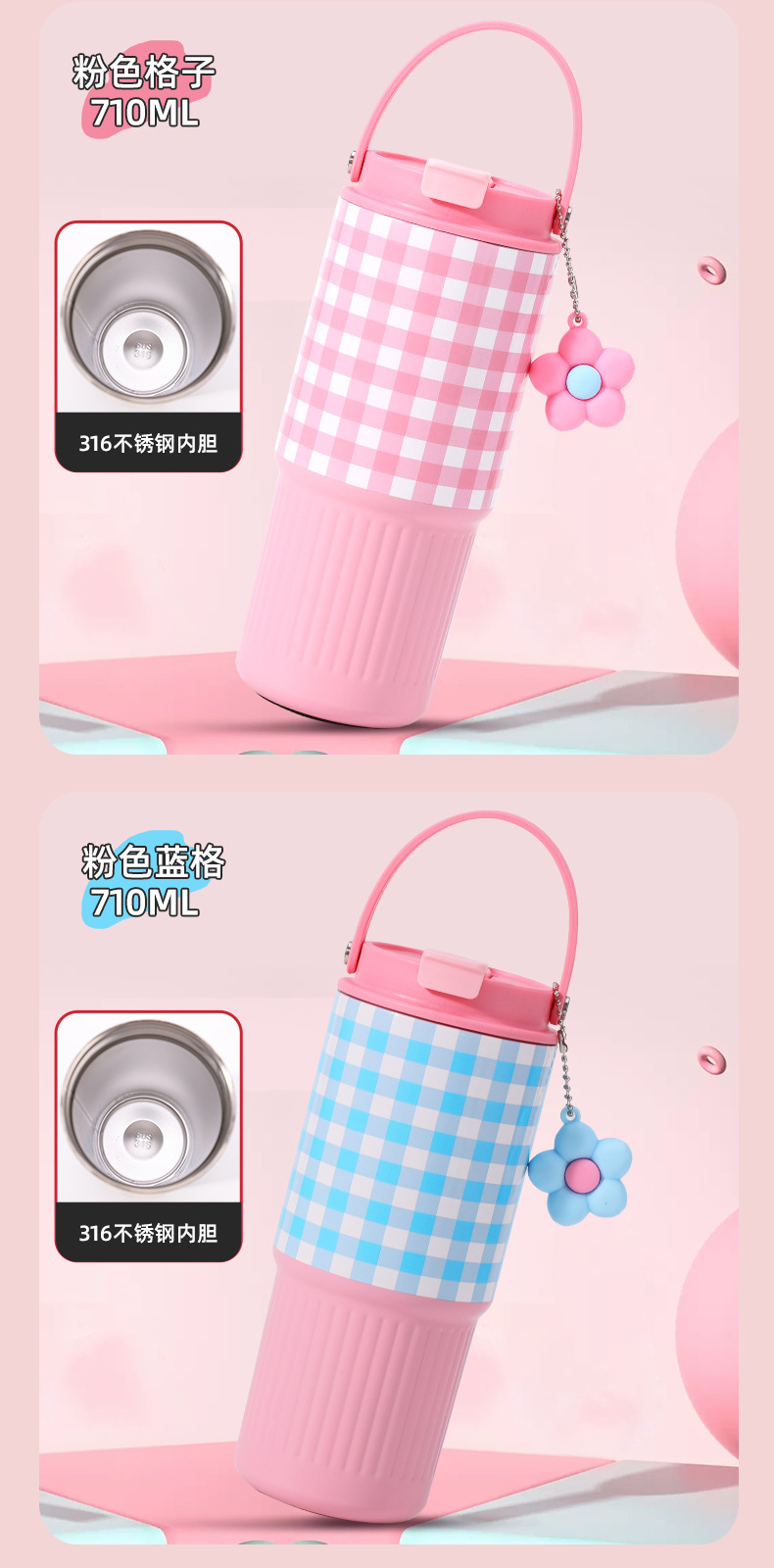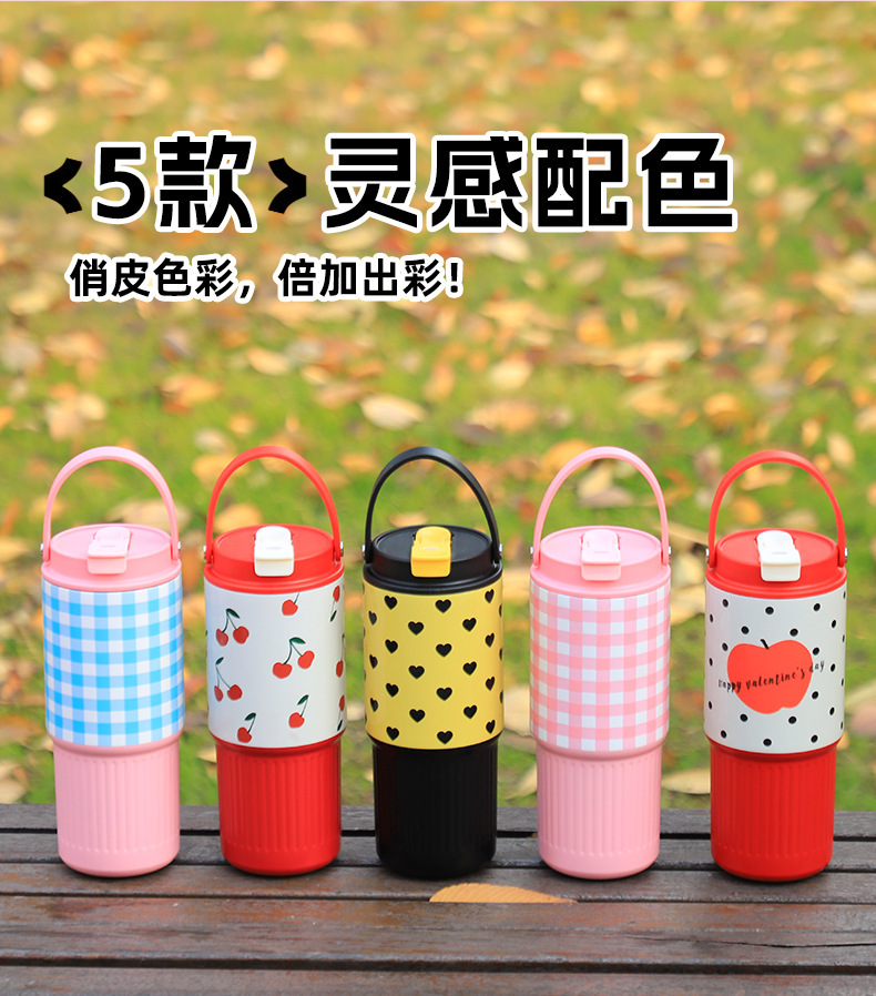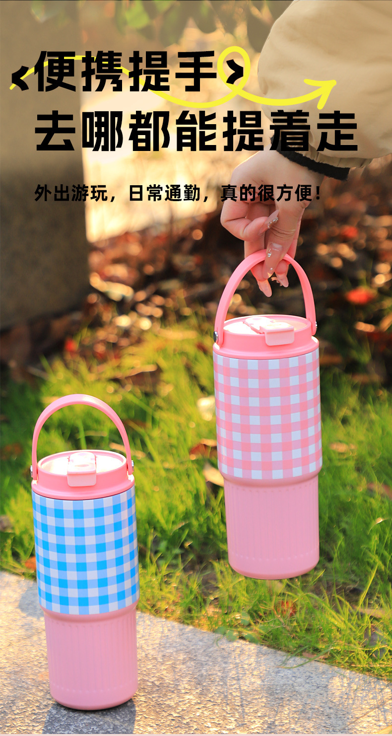 소녀들을 위한 새로운 인터넷 연예인 격자 무늬 밀짚 보온병 컵, 고급스러운 스테인레스 스틸 대용량 물컵, 자동차 얼음 컵스토어 가기