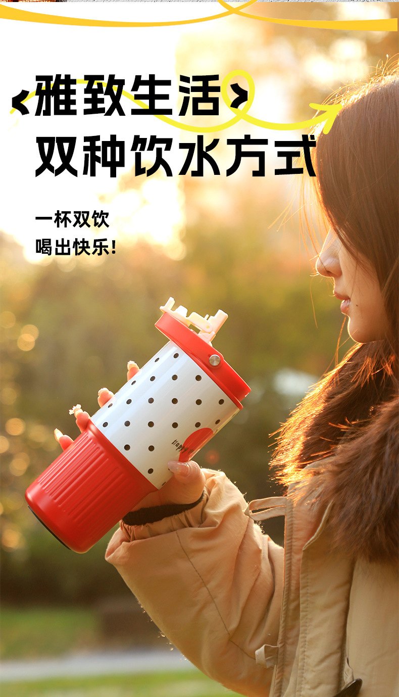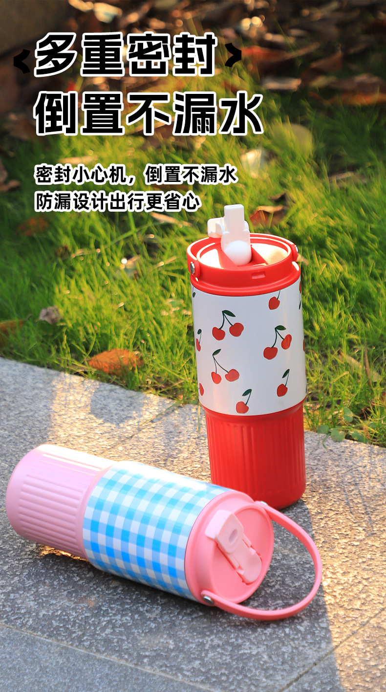 소녀들을 위한 새로운 인터넷 연예인 격자 무늬 밀짚 보온병 컵, 고급스러운 스테인레스 스틸 대용량 물컵, 자동차 얼음 컵