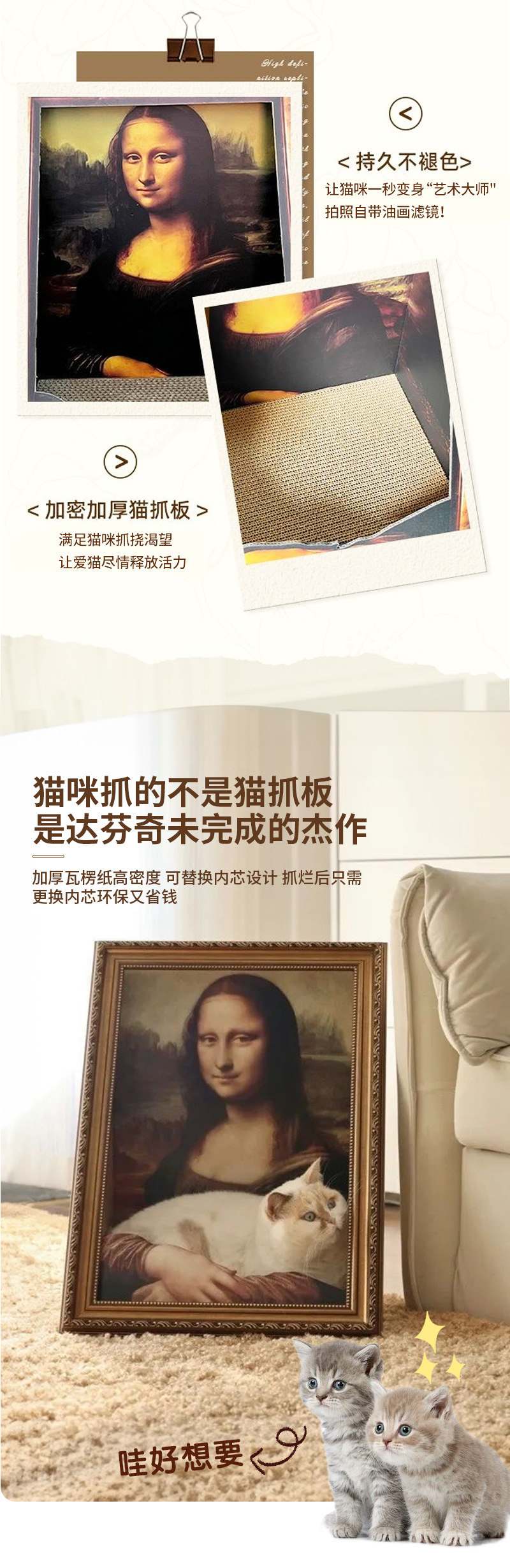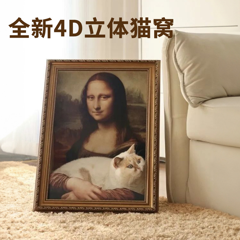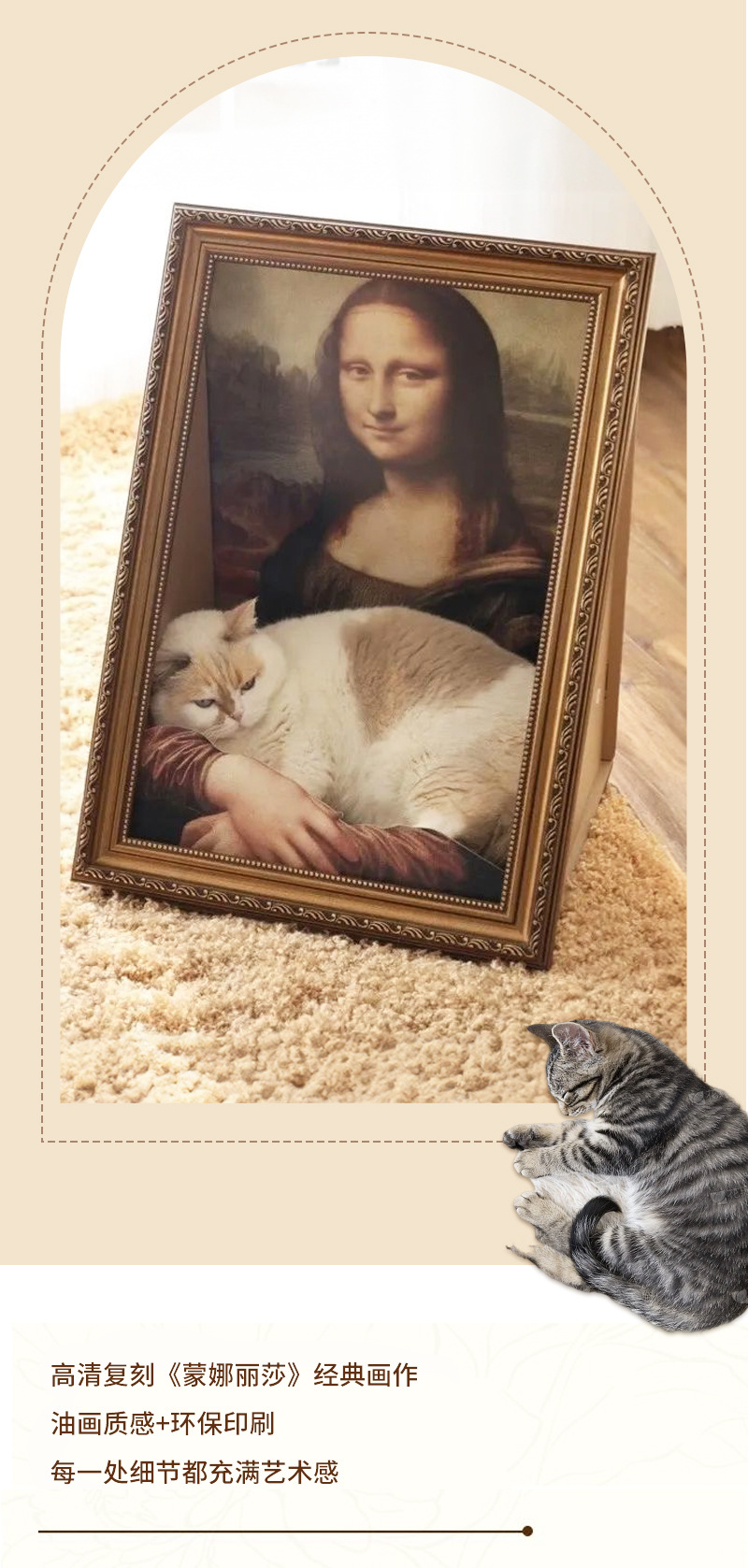 고양이와 개집 모나리자 고양이 스크래치 보드 고양이 집 액자 세계적으로 유명한 그림 액자 긁힘 방지 및 부스러기 없는 골판지 유화스토어 가기
