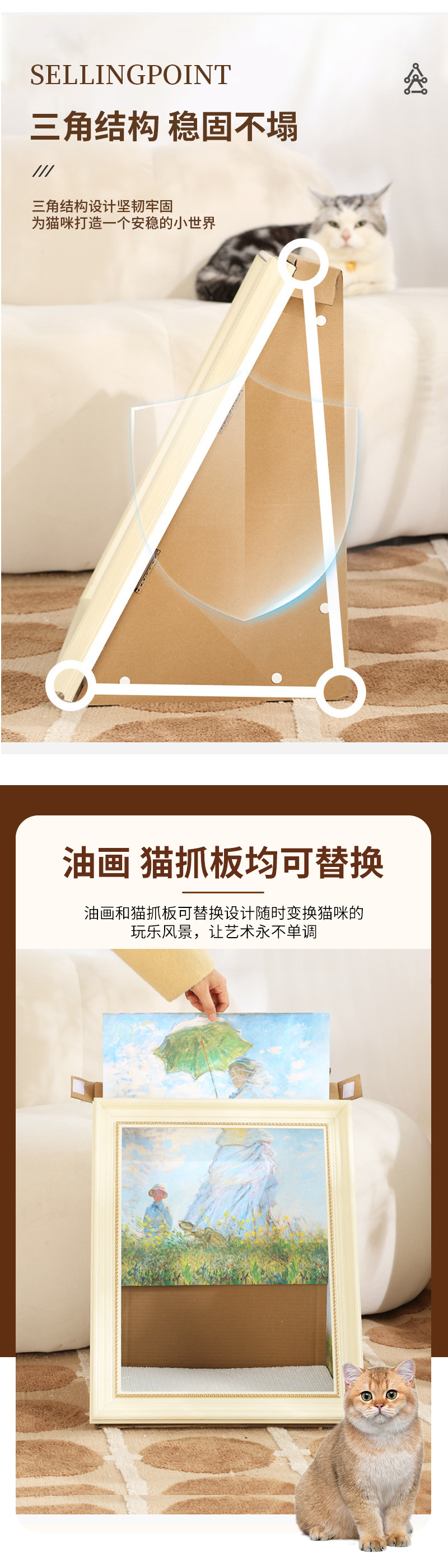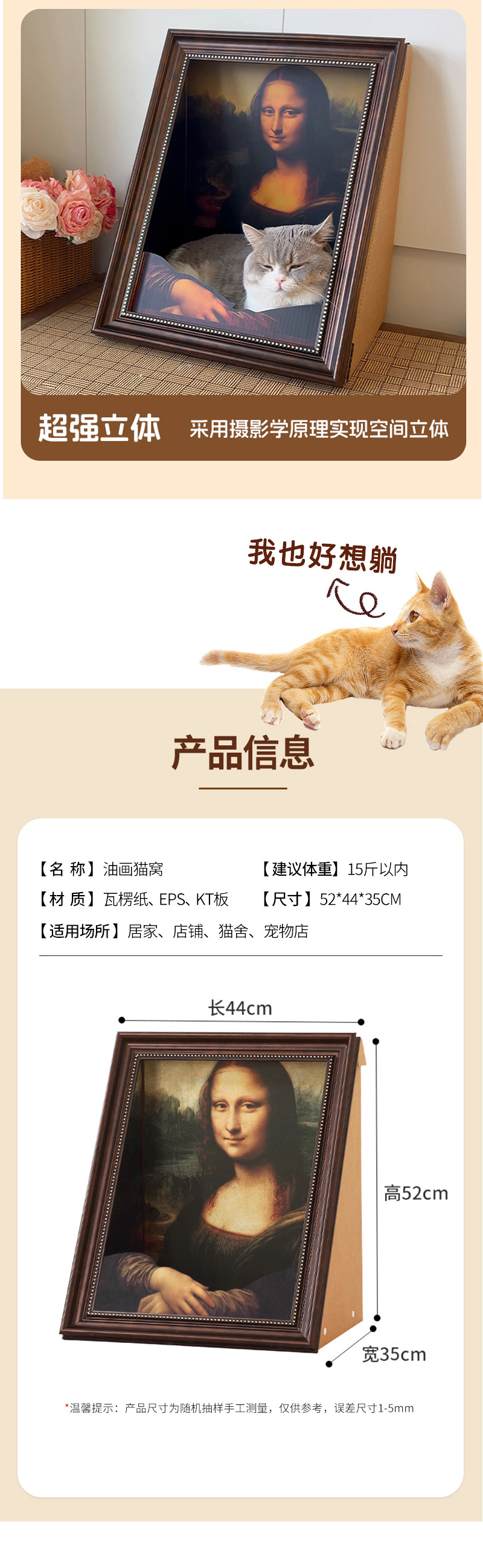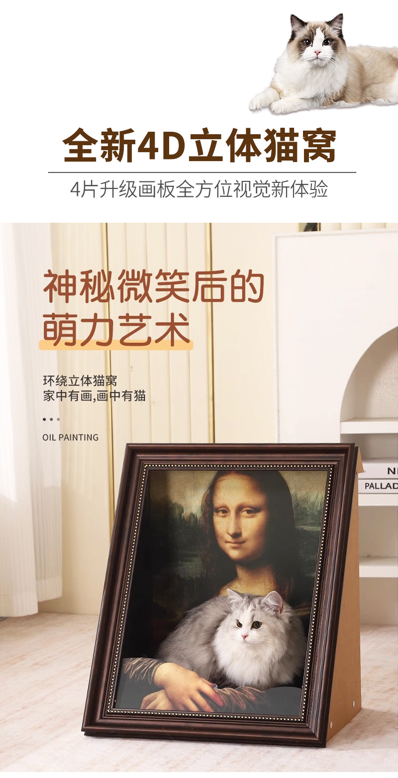 고양이와 개집 모나리자 고양이 스크래치 보드 고양이 집 액자 세계적으로 유명한 그림 액자 긁힘 방지 및 부스러기 없는 골판지 유화