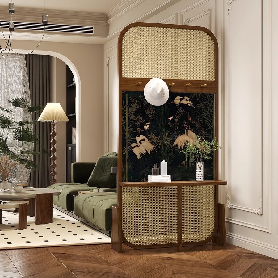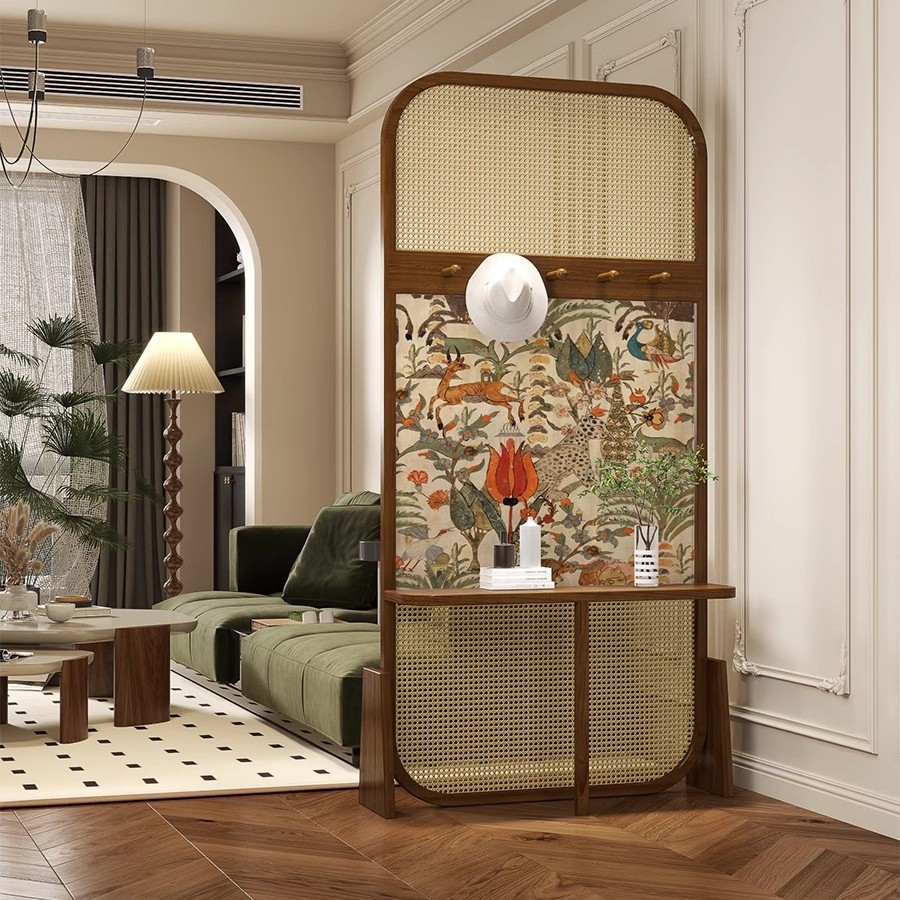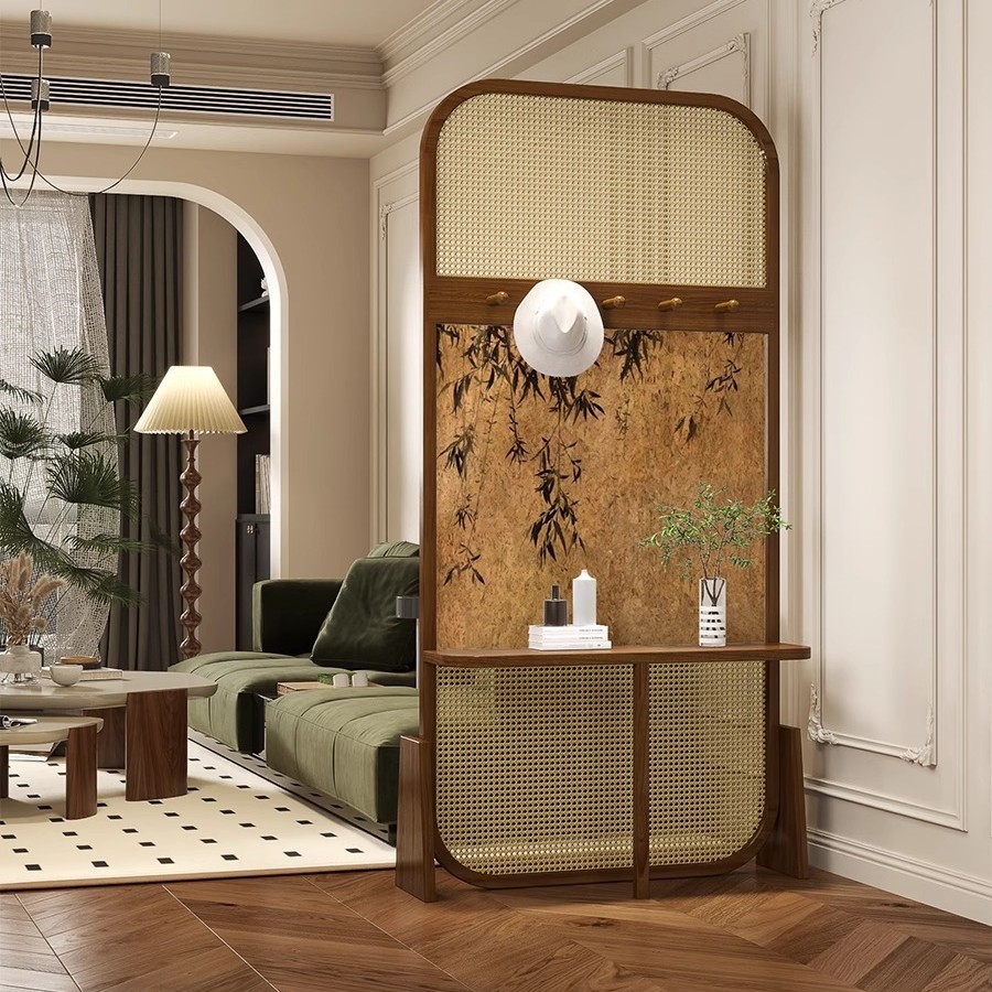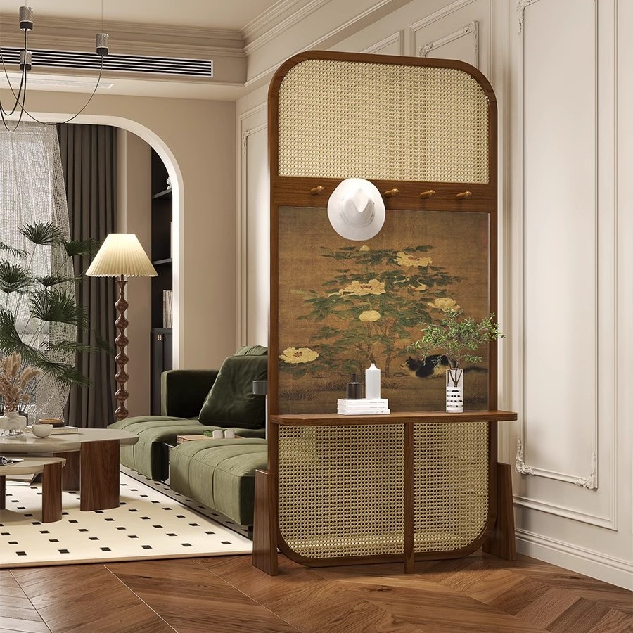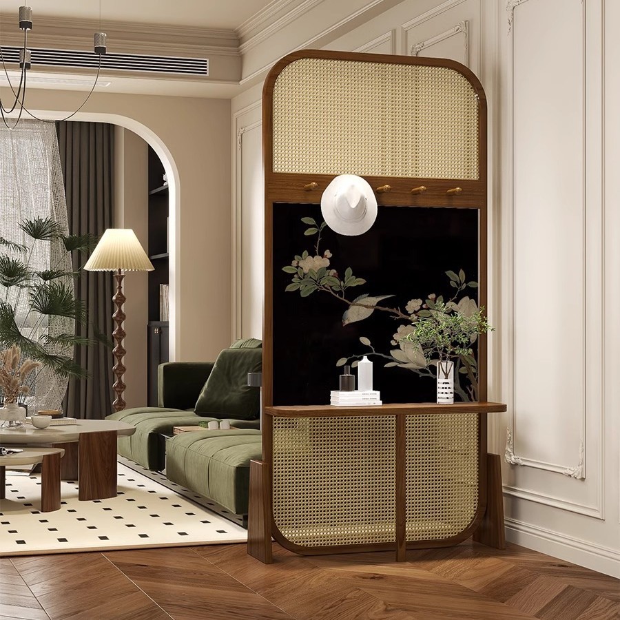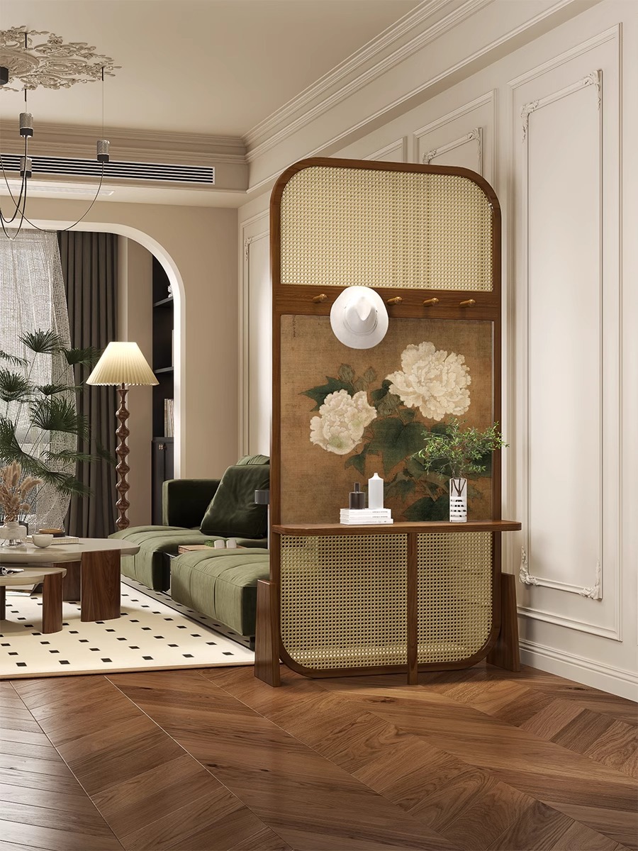 프렌치 레트로 입구 스크린 파티션 거실 원목 도어 선반 입구 모바일 홈 도어 차단