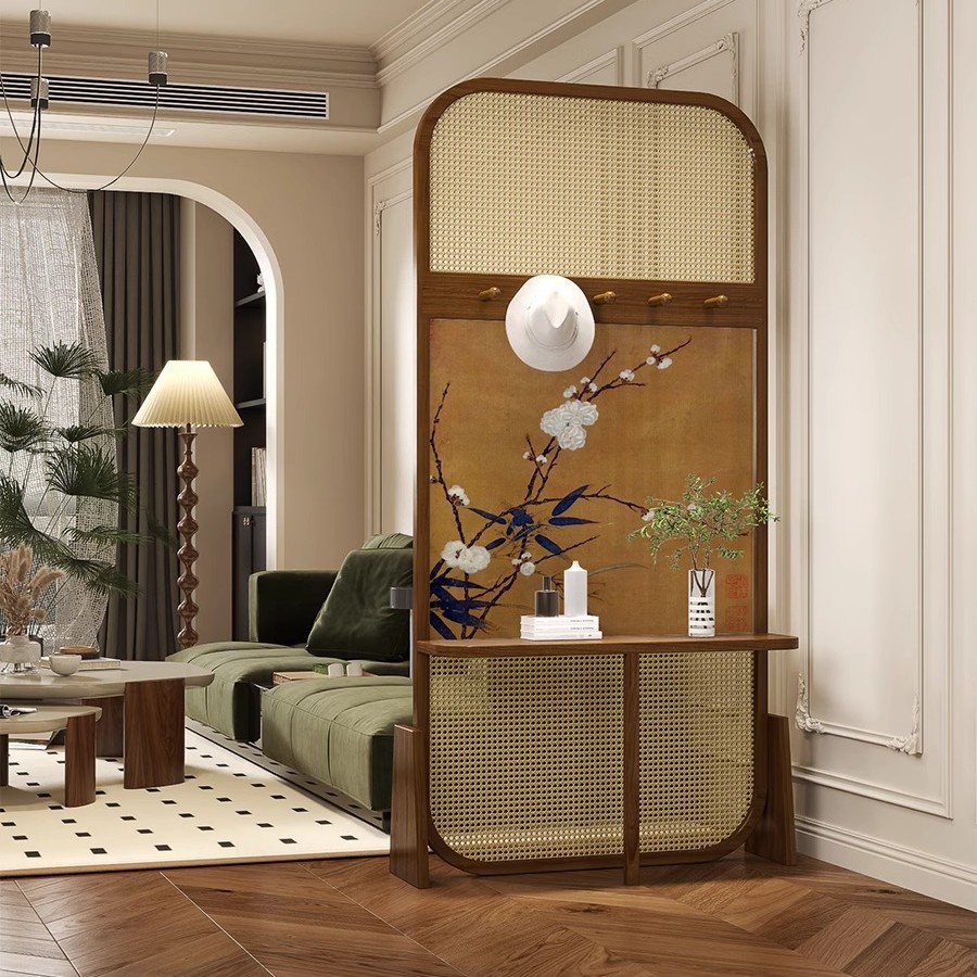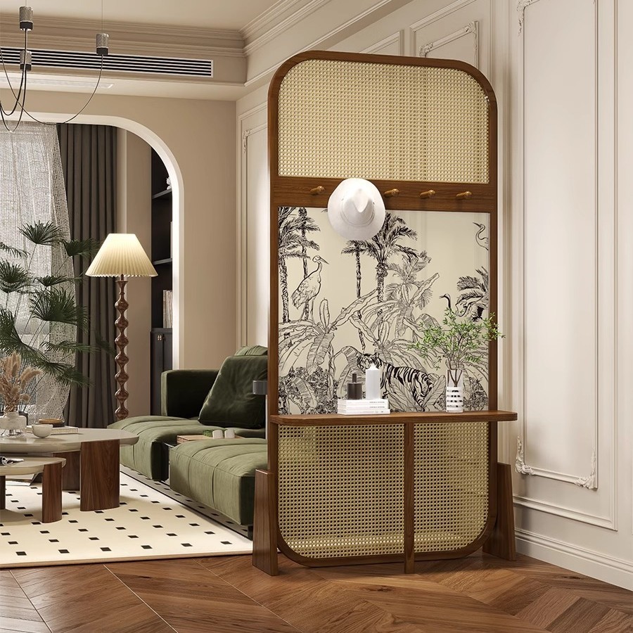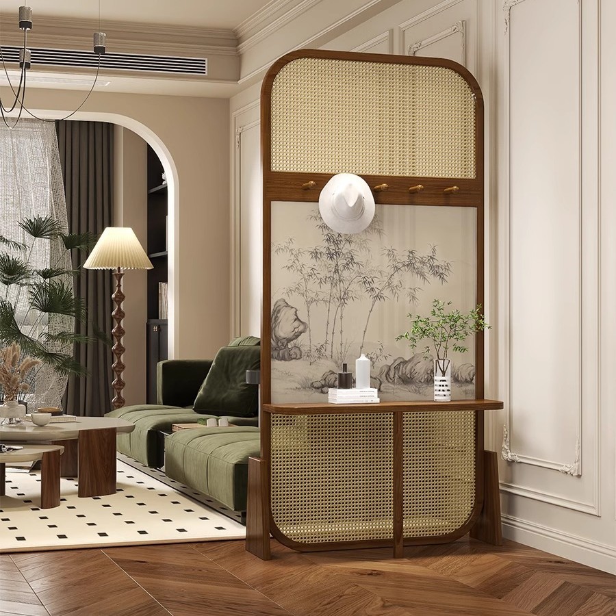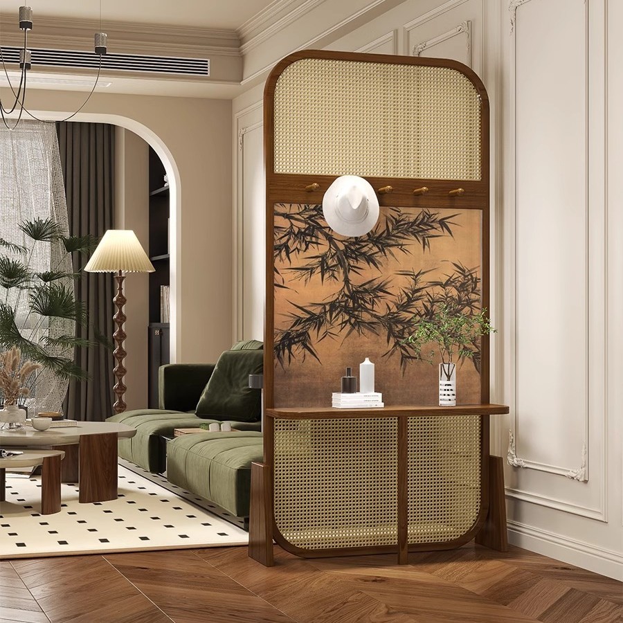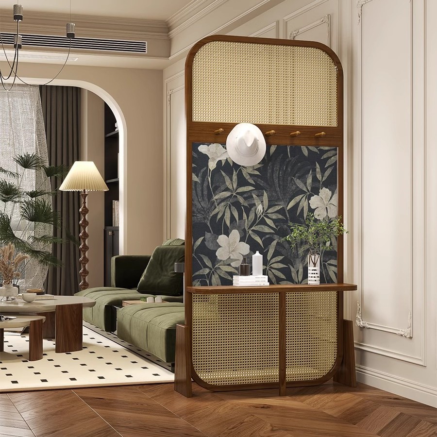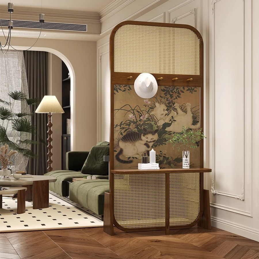 프렌치 레트로 입구 스크린 파티션 거실 원목 도어 선반 입구 모바일 홈 도어 차단