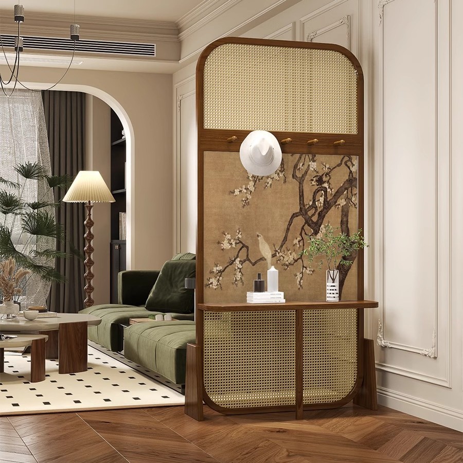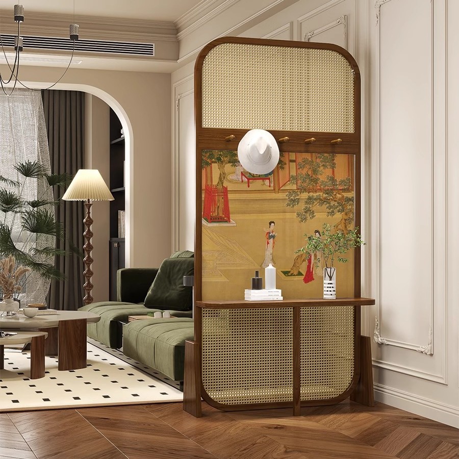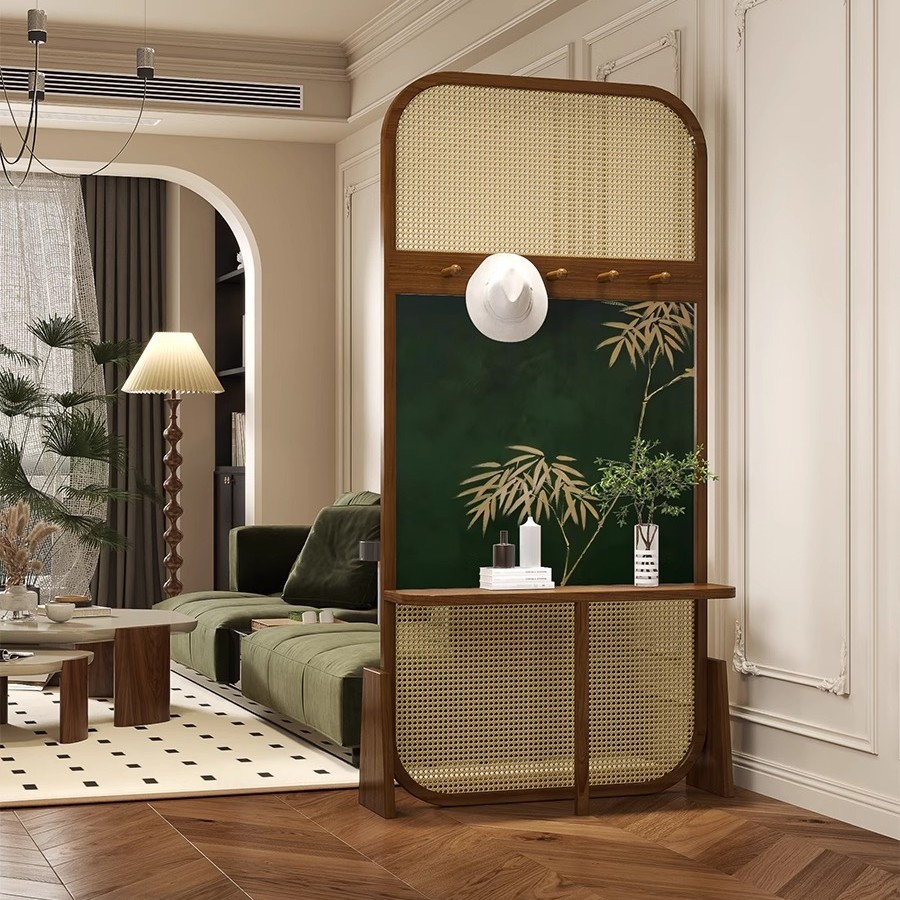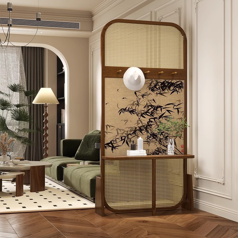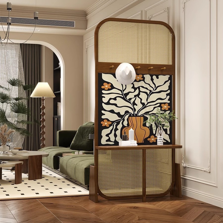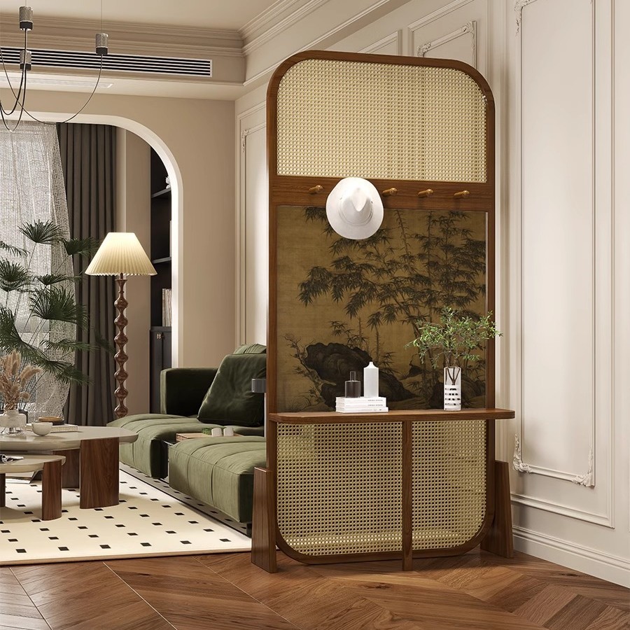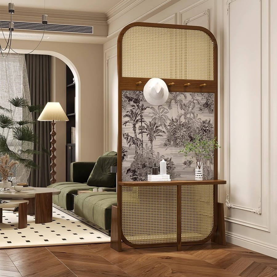 프렌치 레트로 입구 스크린 파티션 거실 원목 도어 선반 입구 모바일 홈 도어 차단