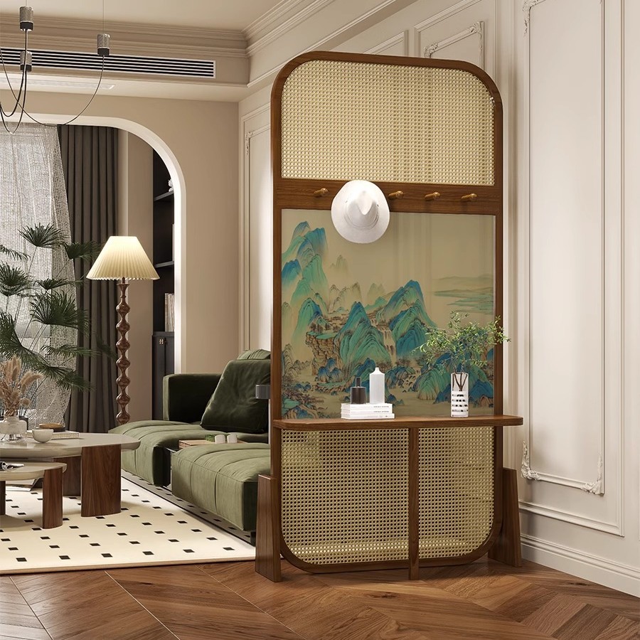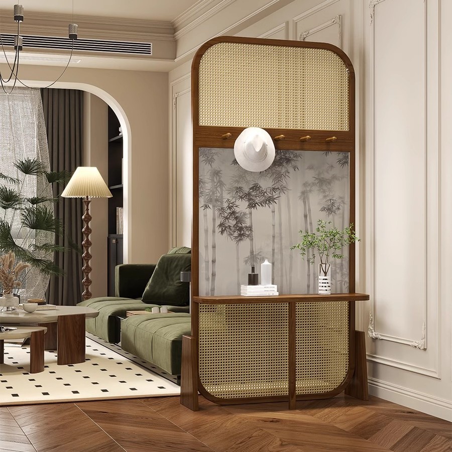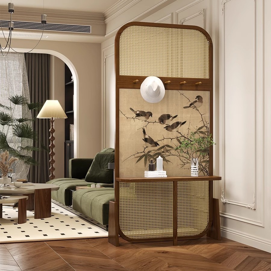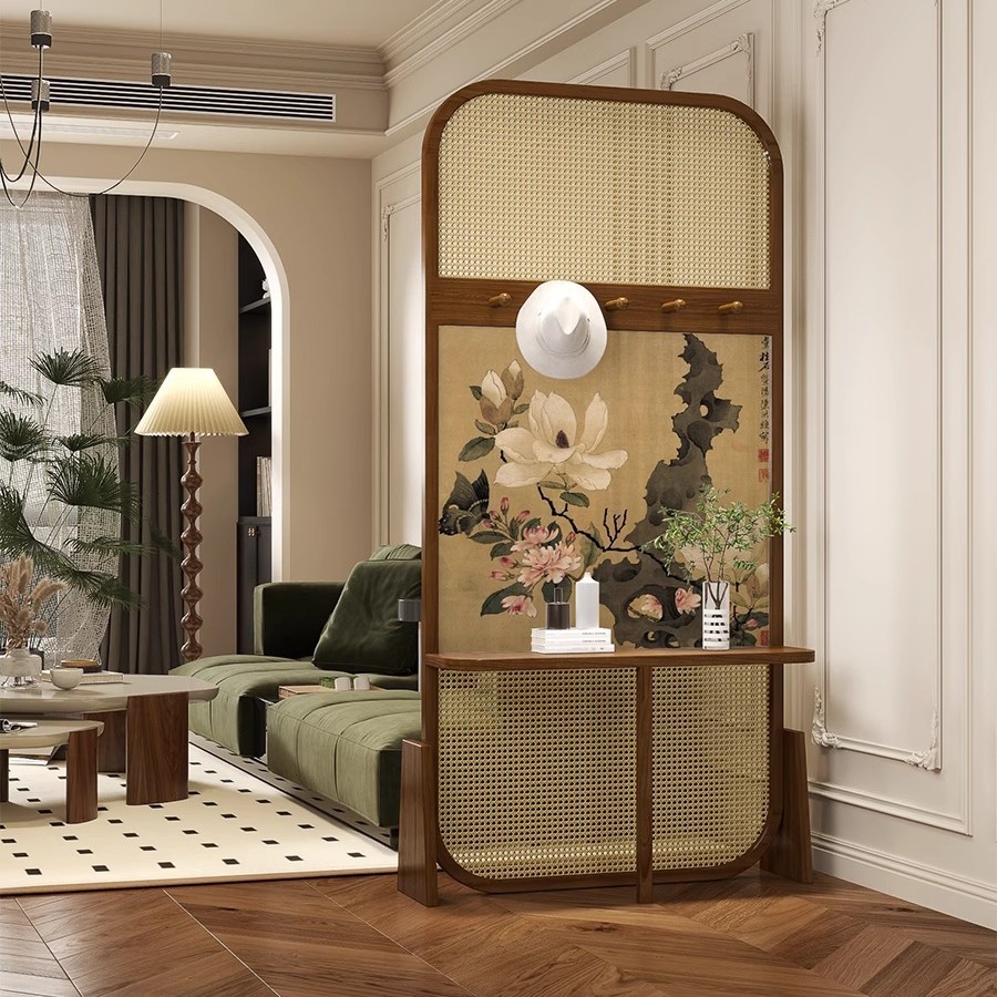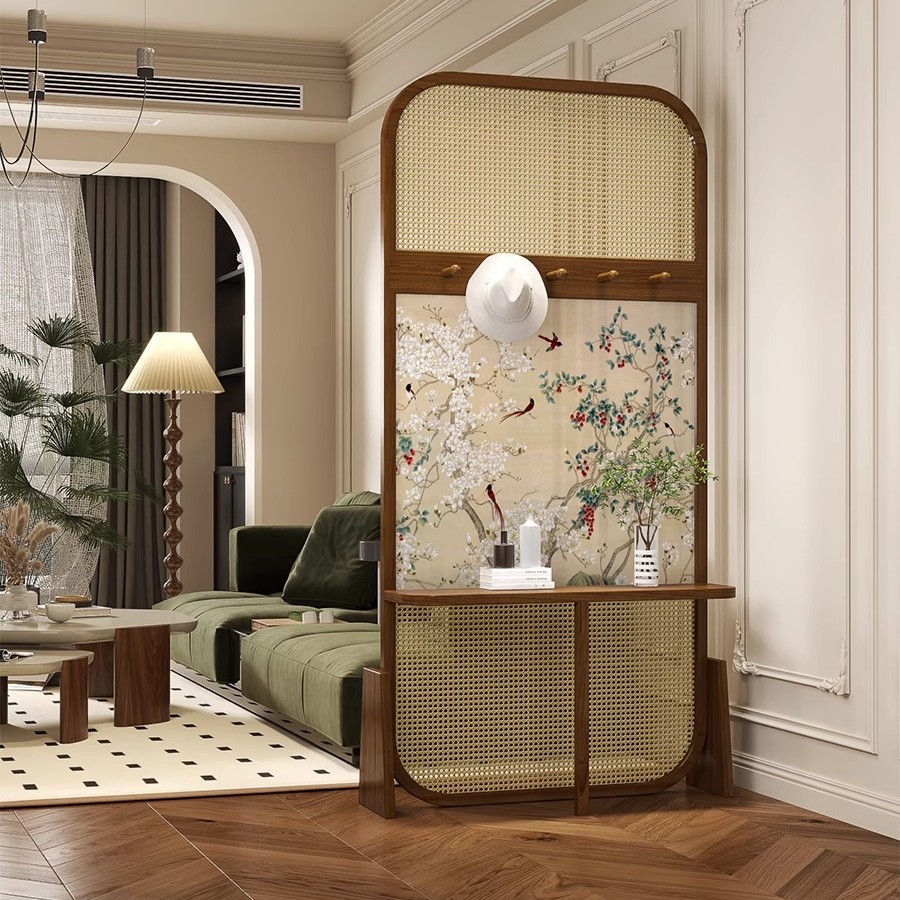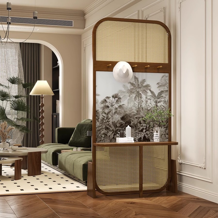 프렌치 레트로 입구 스크린 파티션 거실 원목 도어 선반 입구 모바일 홈 도어 차단