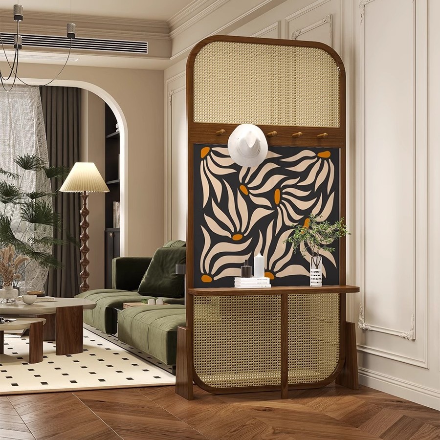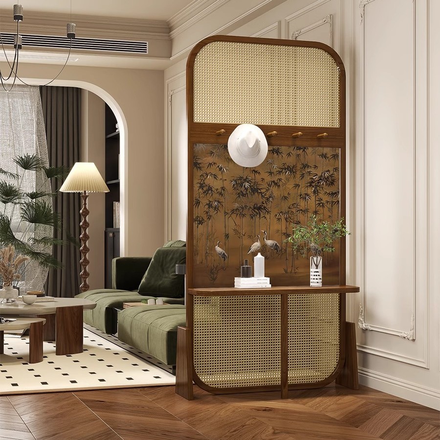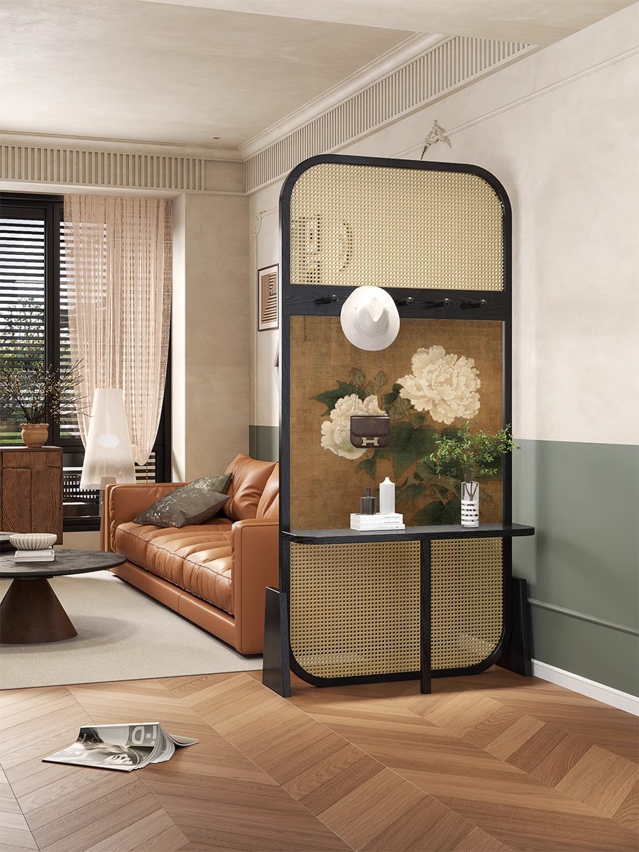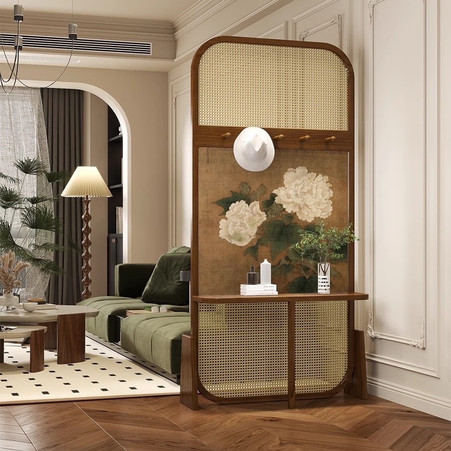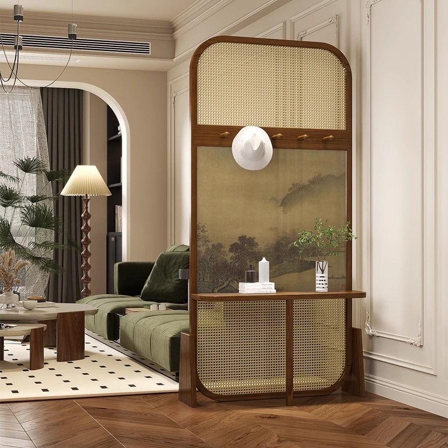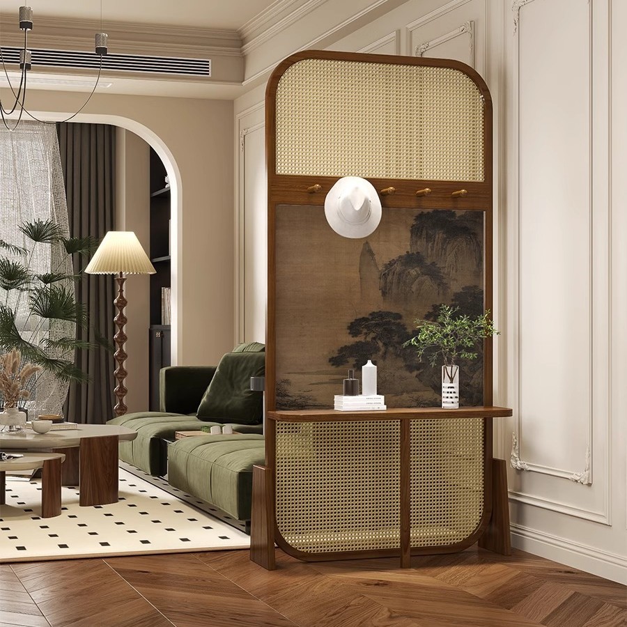 프렌치 레트로 입구 스크린 파티션 거실 원목 도어 선반 입구 모바일 홈 도어 차단