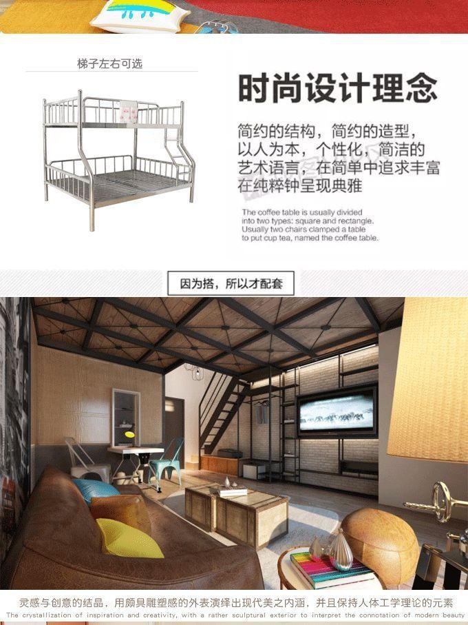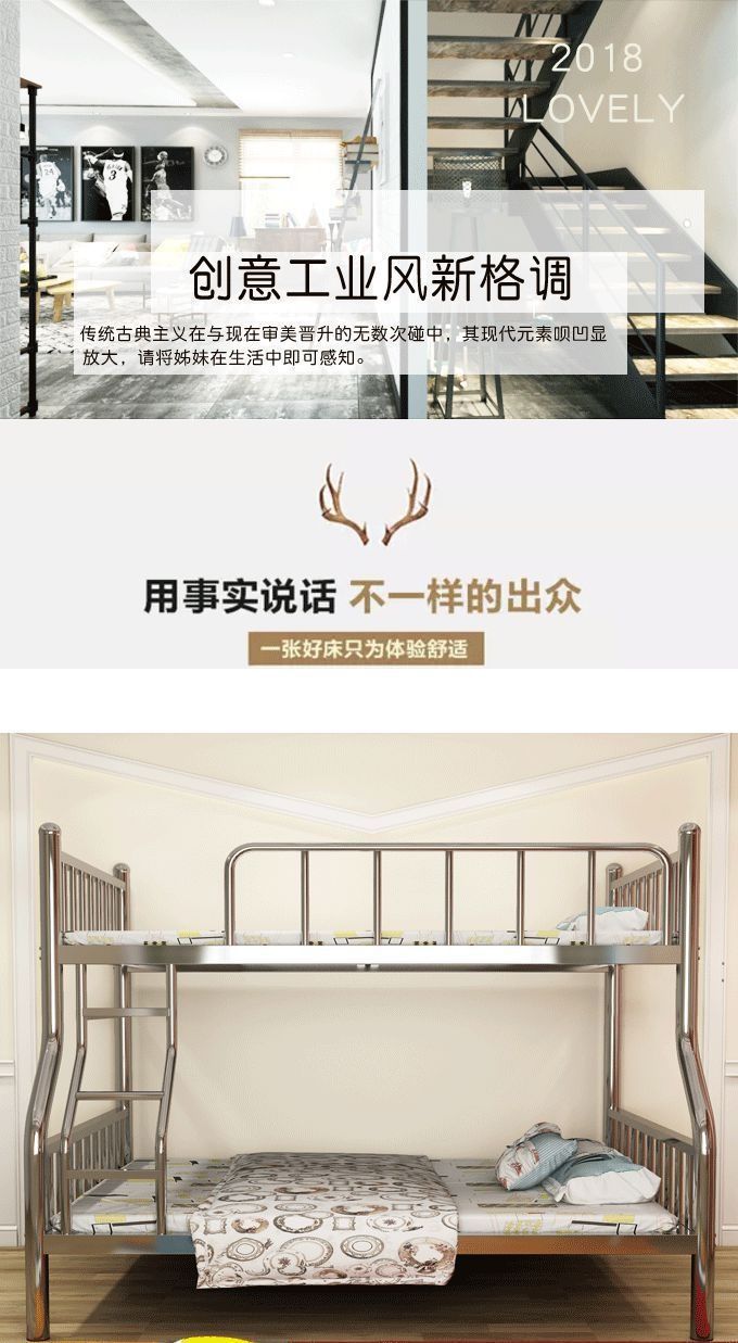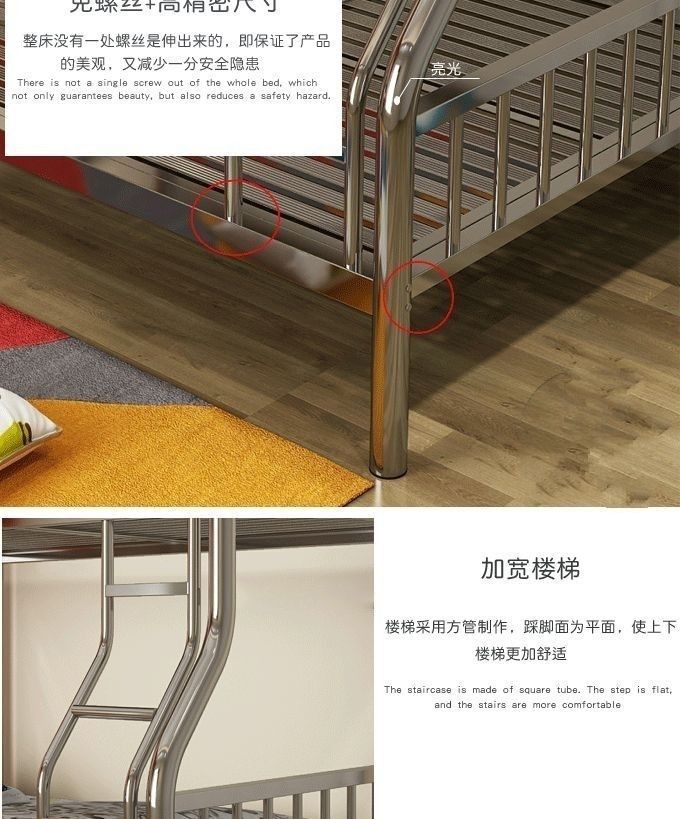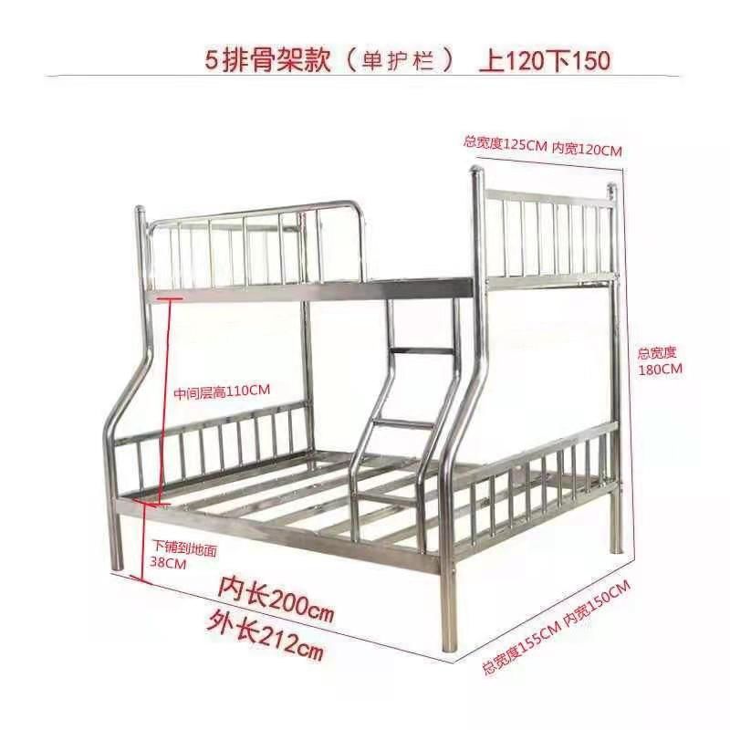 304 스테인레스 스틸 이층 침대 높고 낮은 이층 침대 철제 프레임 침대 두꺼운 높은 침대 1.8m 성인스토어 가기
