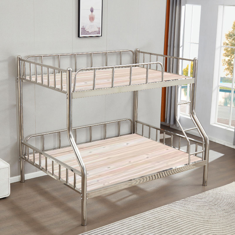 304 스테인레스 스틸 이층 침대 높고 낮은 이층 침대 철제 프레임 침대 두꺼운 높은 침대 1.8m 성인