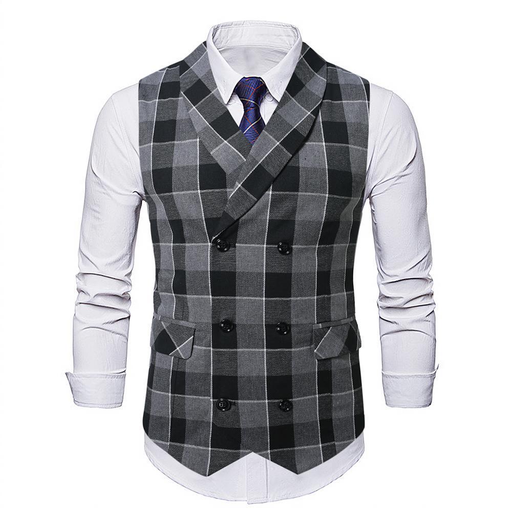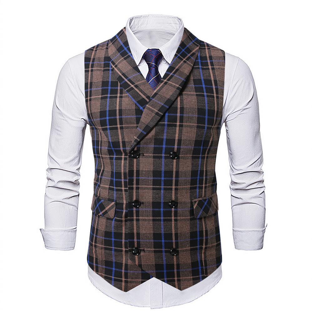 국경 간 대외 무역 유럽과 미국의 복고풍 캐주얼 더블 브레스트 프린트 말 정장 조끼 남성 영국 비즈니스 격자 무늬 조끼스토어 가기
