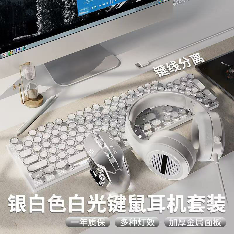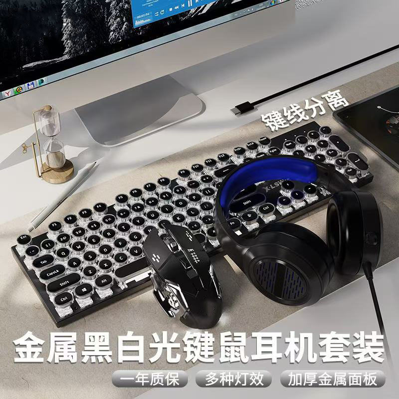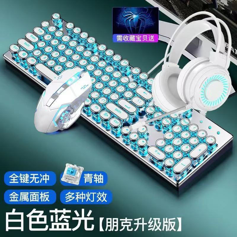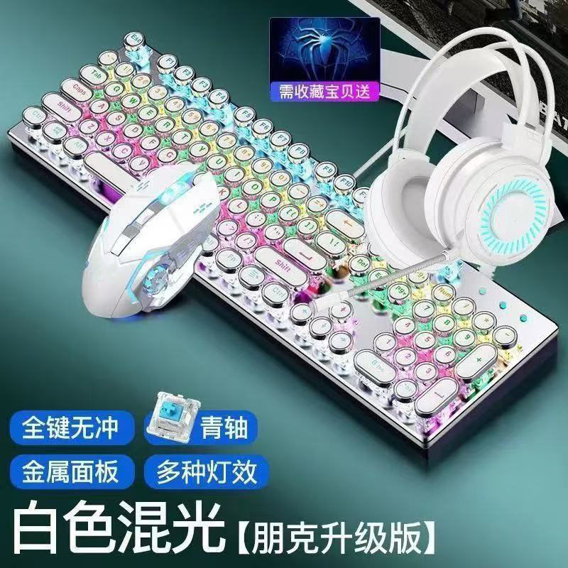 • 화이트 혼합광 청축 키보드 + 매크로 마우스 + 헤드셋 - 업그레이드 버전 [블랙 골드]