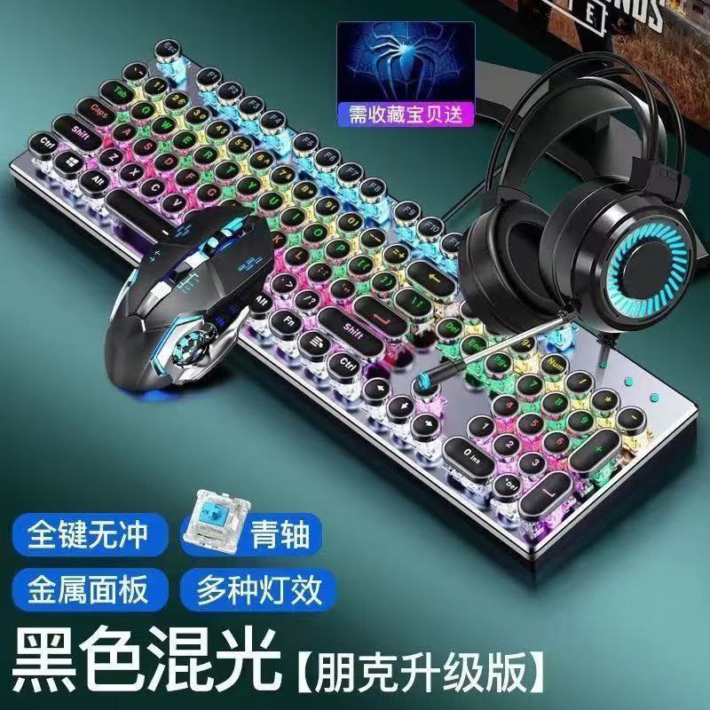 • 검은색 백광 청축 키보드 + 매크로 마우스 + 헤드셋 - 업그레이드 버전 [블랙 골드]
