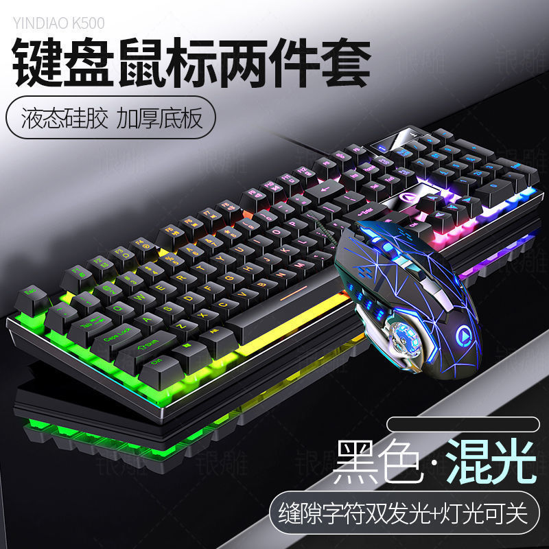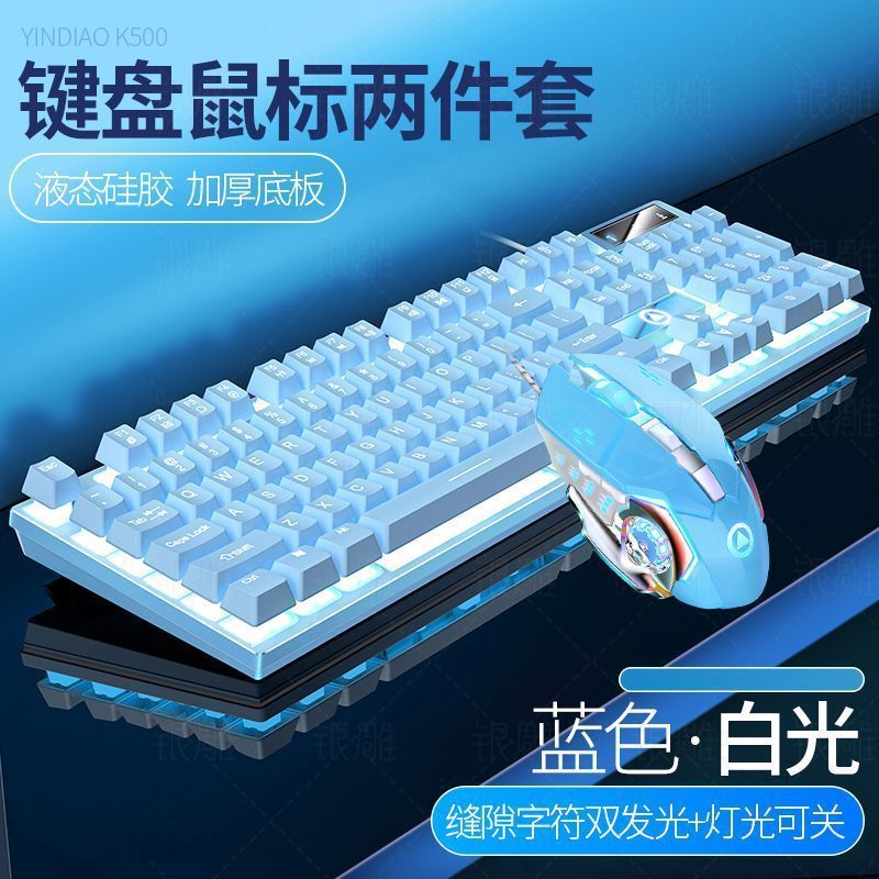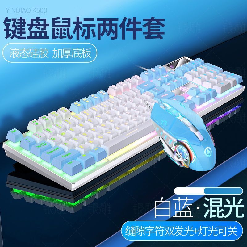 • [키보드 + 게이밍 마우스] - 파란색과 흰색 2색丨백색광 [업그레이드 및 두꺼워짐] [블랙 골드] 업그레이드 버전