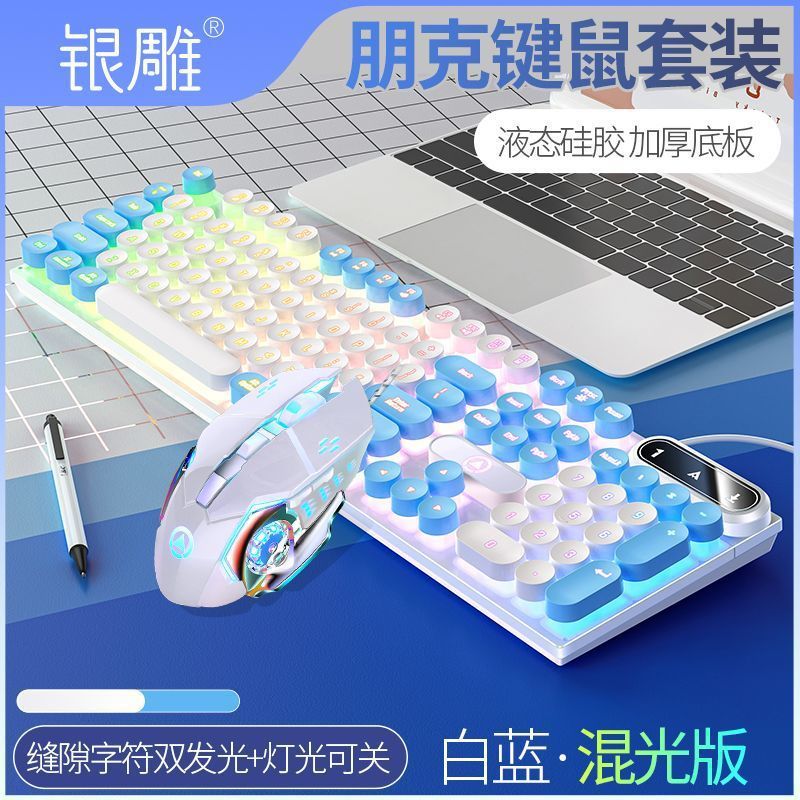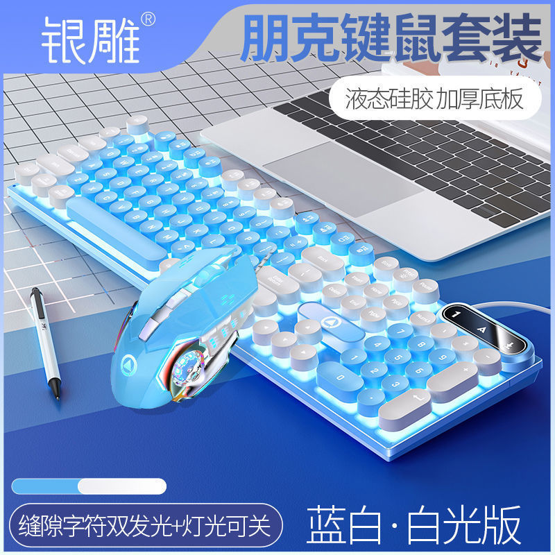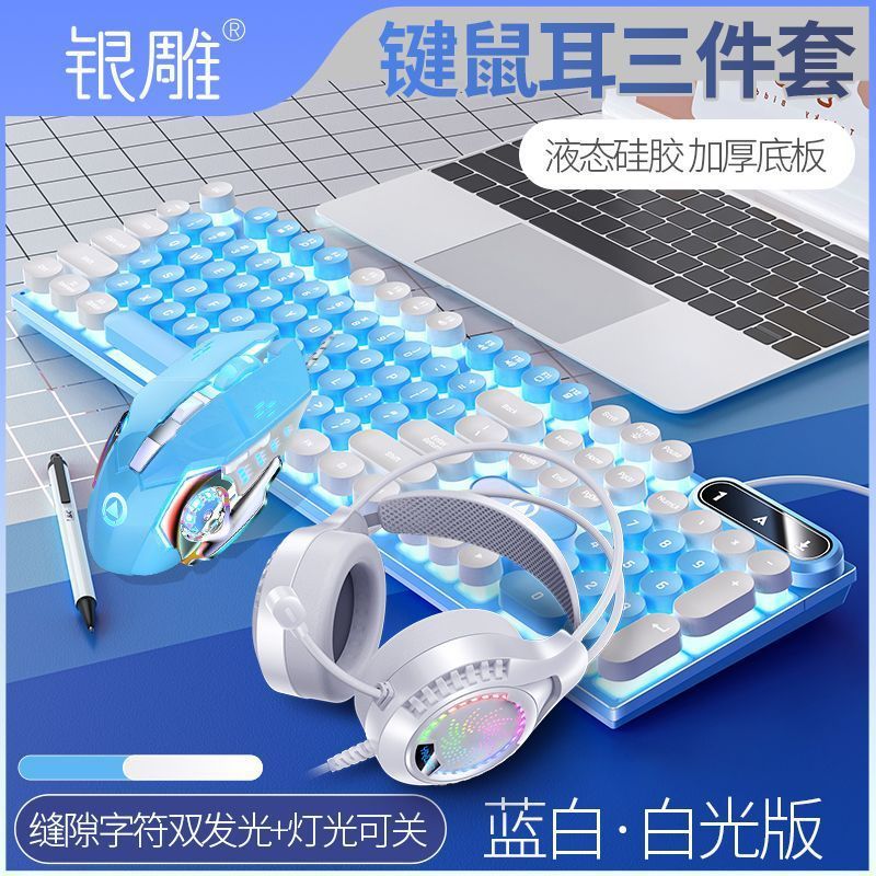 • [키보드 + 게이밍 마우스 + 헤드폰] - 화이트 & 블루 2색丨화이트 라이트 [펑크 라운드 키캡] [블랙 골드] 업그레이드 버전