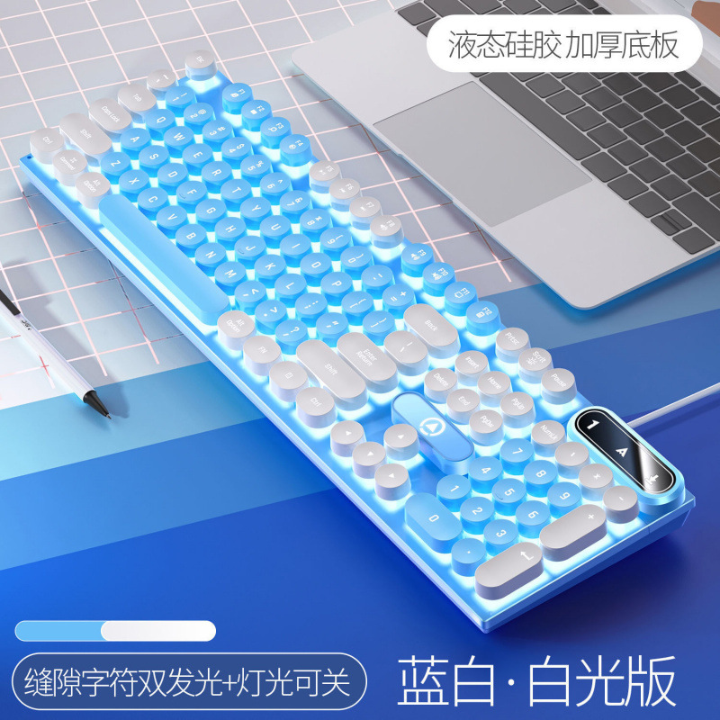 • [싱글 키보드] - 파란색과 흰색 2색丨백색광 [펑크 원형 키캡] [블랙 골드] 업그레이드 버전