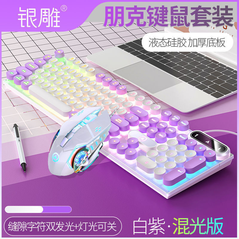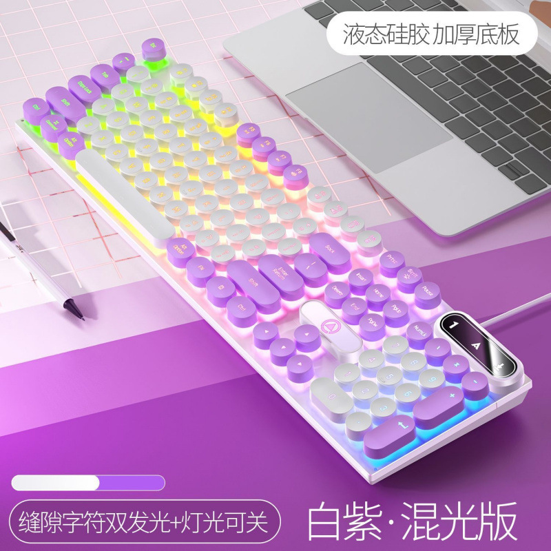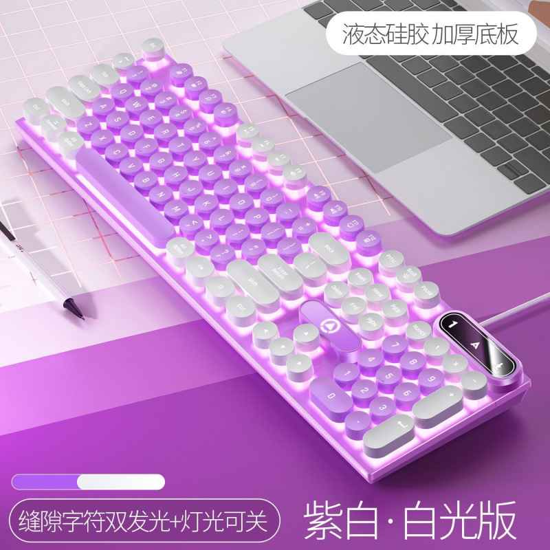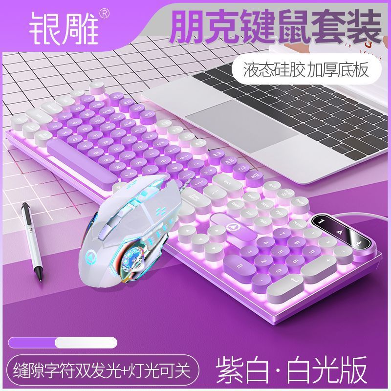 • [키보드 + 게이밍 마우스] - 흰색과 보라색 2색丨백색광 [펑크 원형 키캡] [블랙 골드] 업그레이드 버전