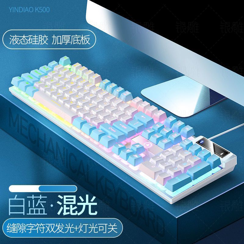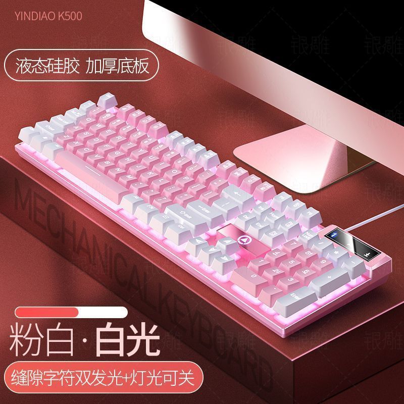 진정한 기계적 느낌의 키보드 유선 데스크탑 컴퓨터 게임 사무실 소녀 음소거 제조업체 국경 간 Amazon