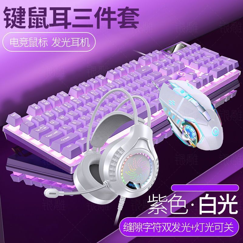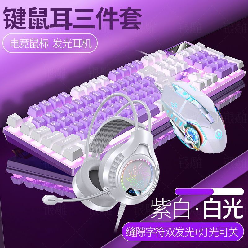 • [키보드 + 게이밍 마우스 + 헤드폰] - 보라색과 흰색 2색丨백색광 [업그레이드 및 두꺼워짐] [블랙 골드] 업그레이드 버전