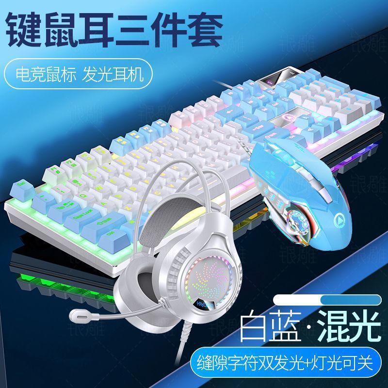 • [키보드 + 게이밍 마우스 + 헤드폰] - 파란색과 흰색 2색丨백색광 [업그레이드 및 두꺼워짐] [블랙 골드] 업그레이드 버전