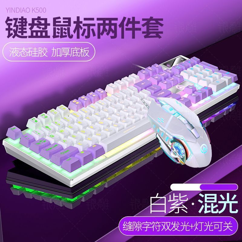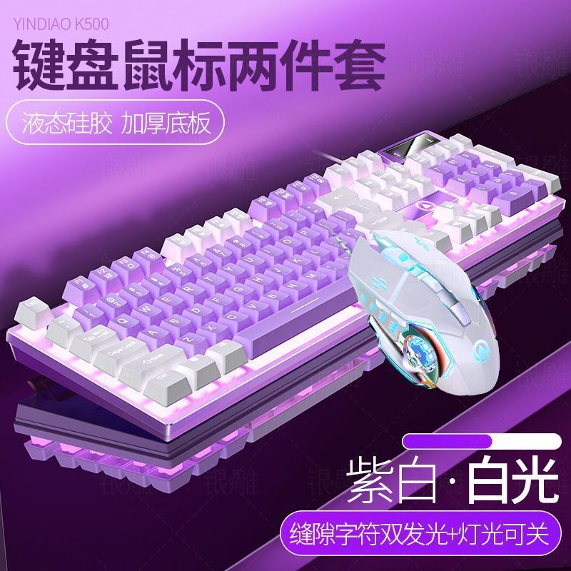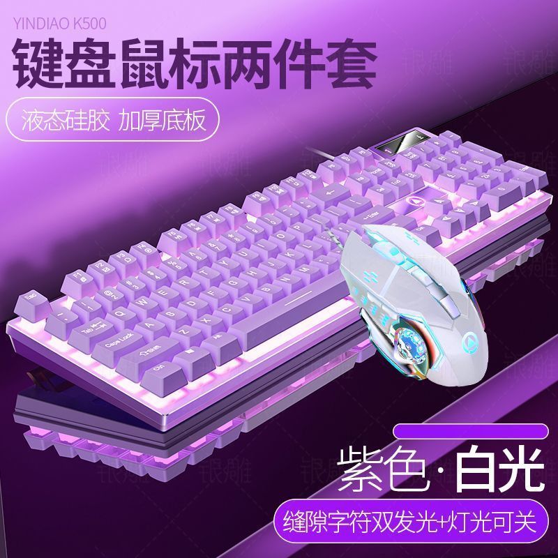 • [키보드 + 게이밍 마우스] - 보라색과 흰색 2색丨백색광 [업그레이드 및 두꺼워짐] [블랙 골드] 업그레이드 버전