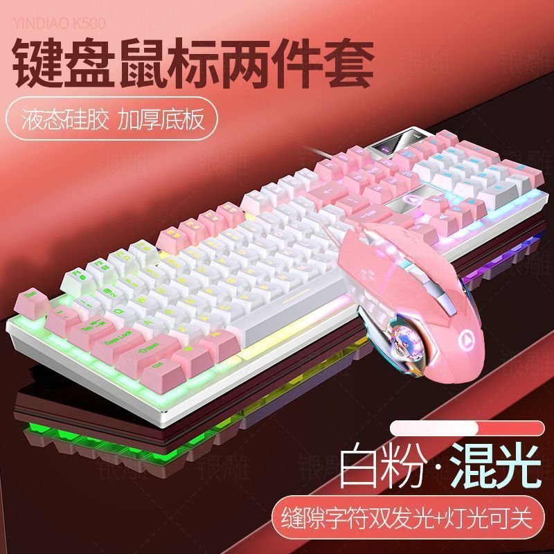 • [키보드 + 게이밍 마우스] - 핑크와 화이트 2색丨화이트 라이트 [업그레이드 및 두꺼워짐] [블랙 골드] 업그레이드 버전