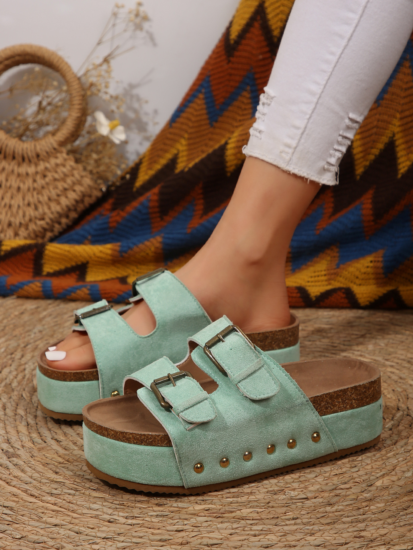 대외 무역 대형 두꺼운 밑창 Birkenstock 리벳 샌들 2025 봄 여름 새로운 금속 버클 비치 여성 신발 Amazon