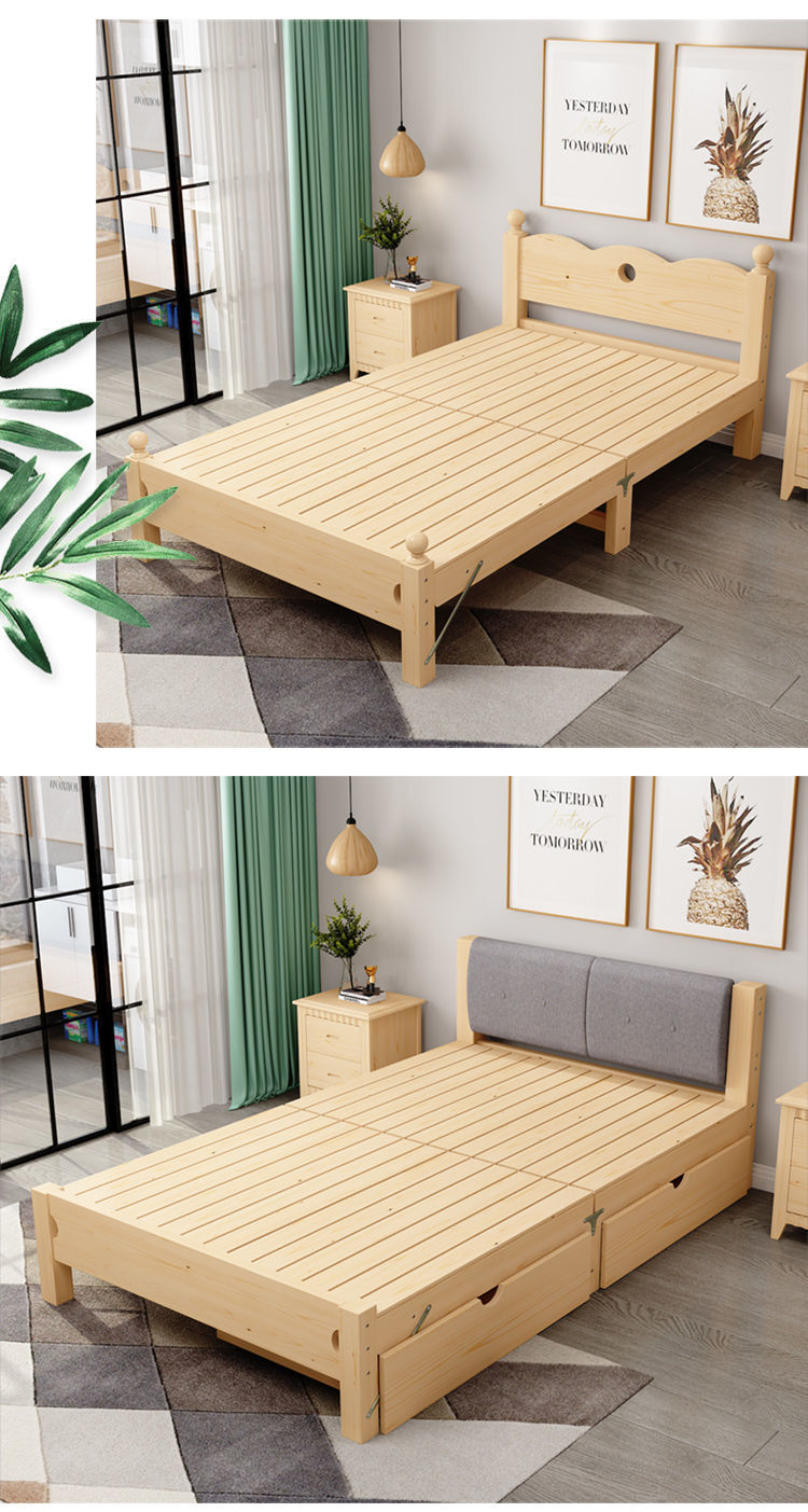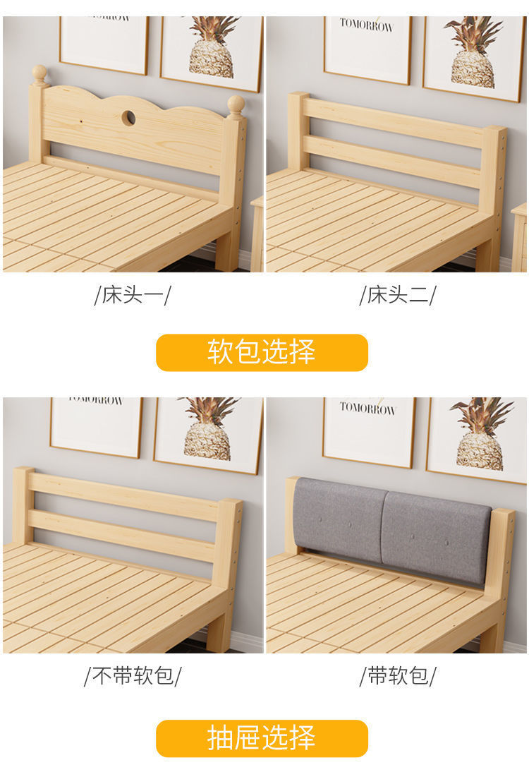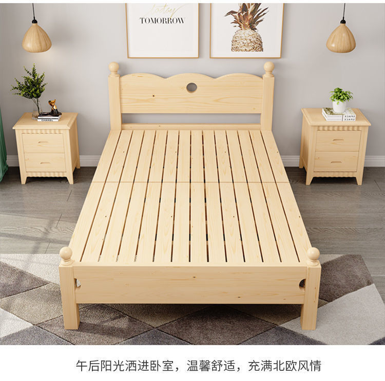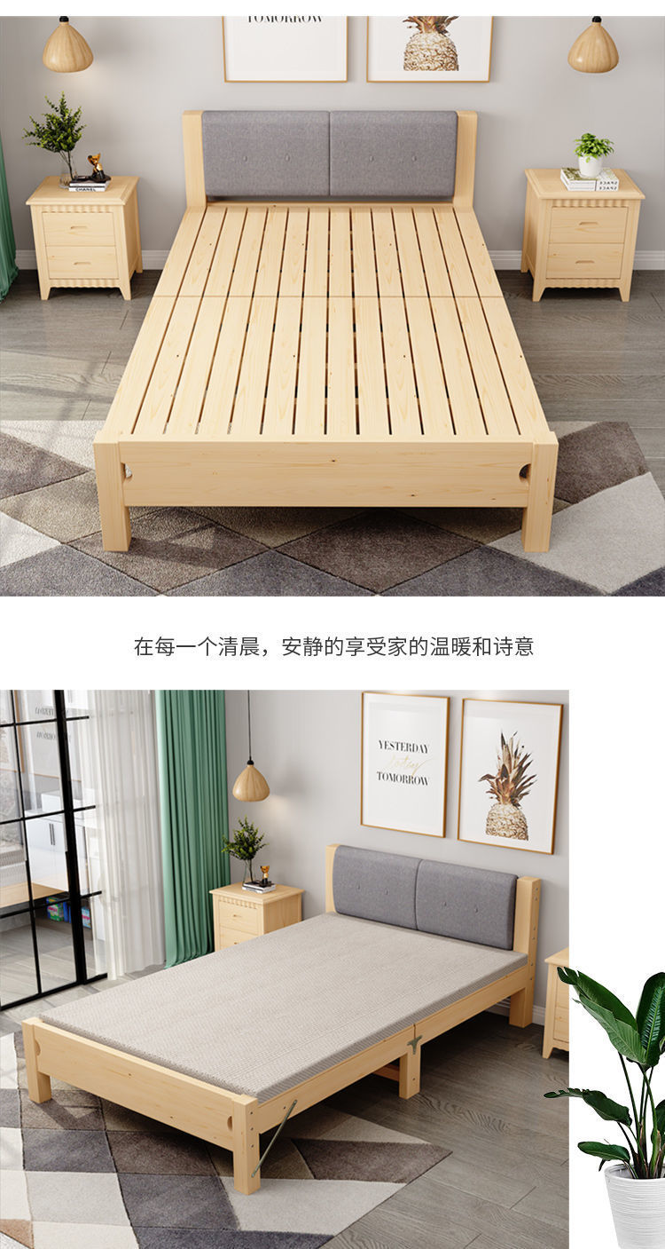 원목 침대 1.2m 싱글 침대 모던 심플 1.5m 더블 침대 경제적 0.8m 플러스 소프트 등받이 접이식 침대