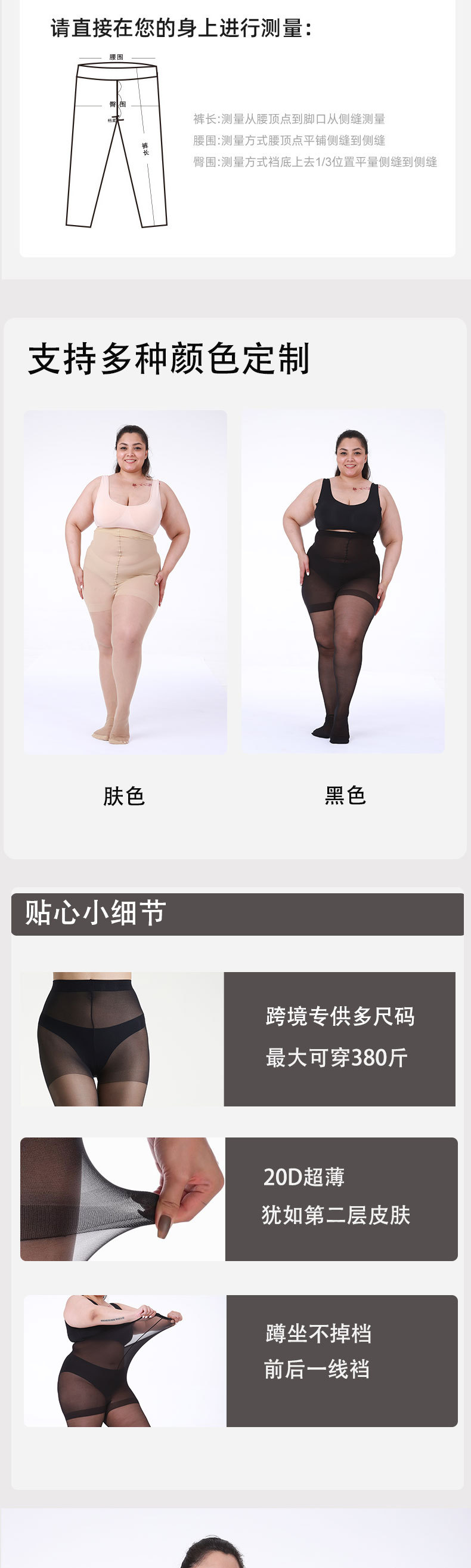 유럽 및 미국 스타일의 초대형 사이즈, 흘러내림 방지 기능이 있는 팬티스타킹, 뚱뚱한 여성용, 20D 얇은 팬티스타킹스토어 가기