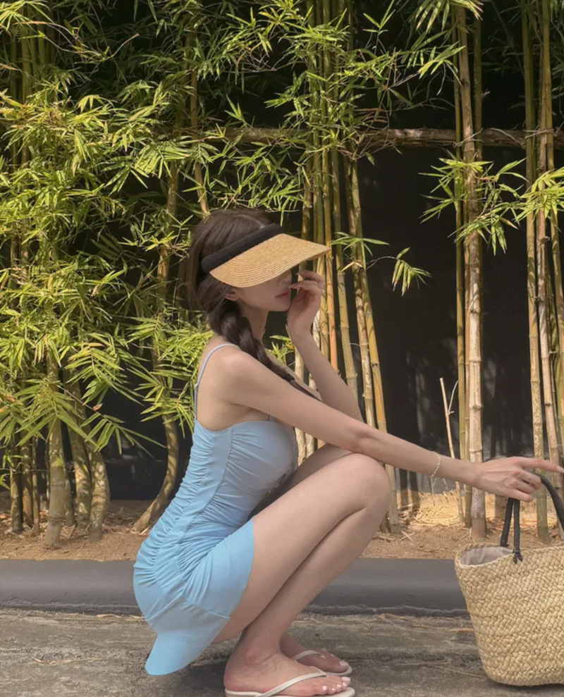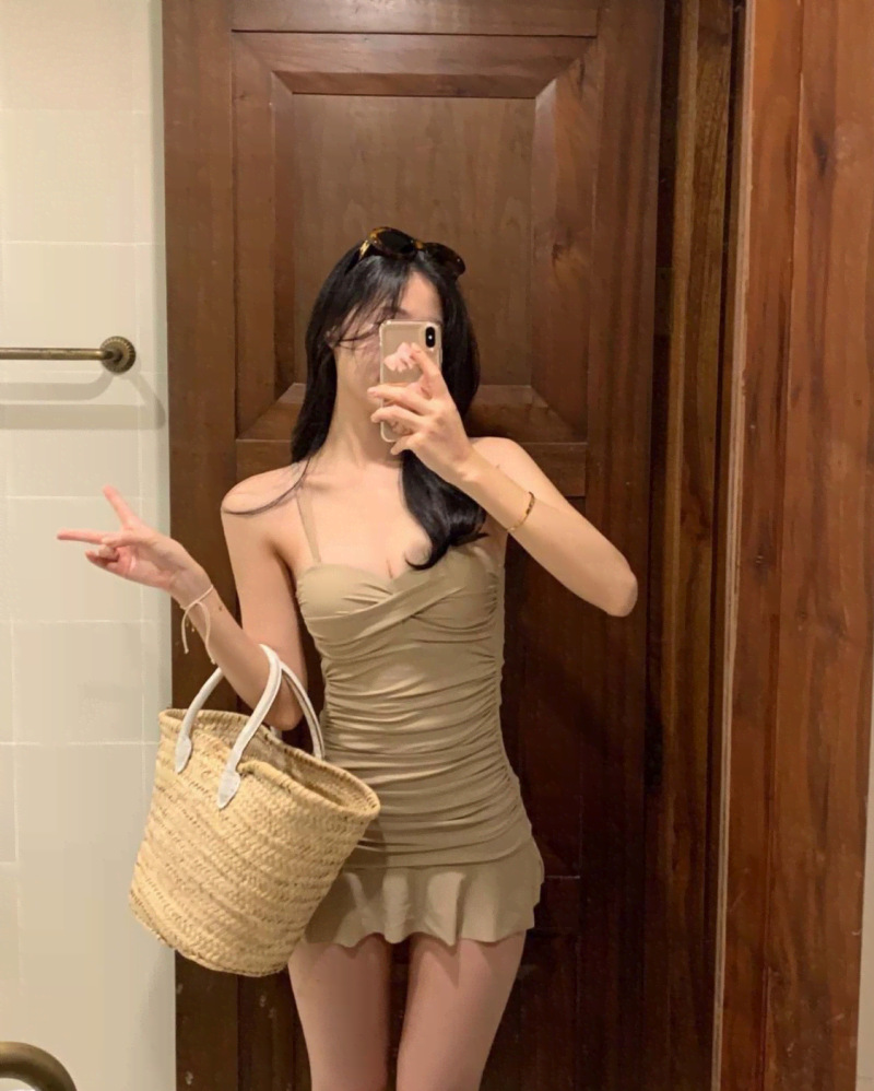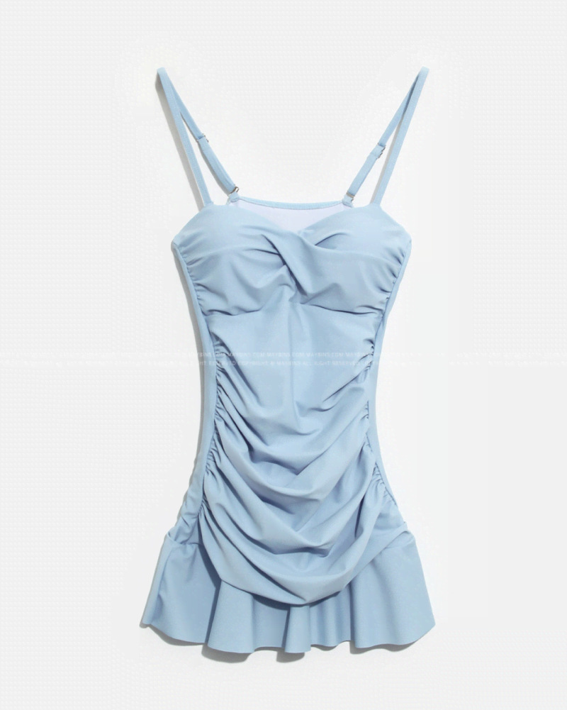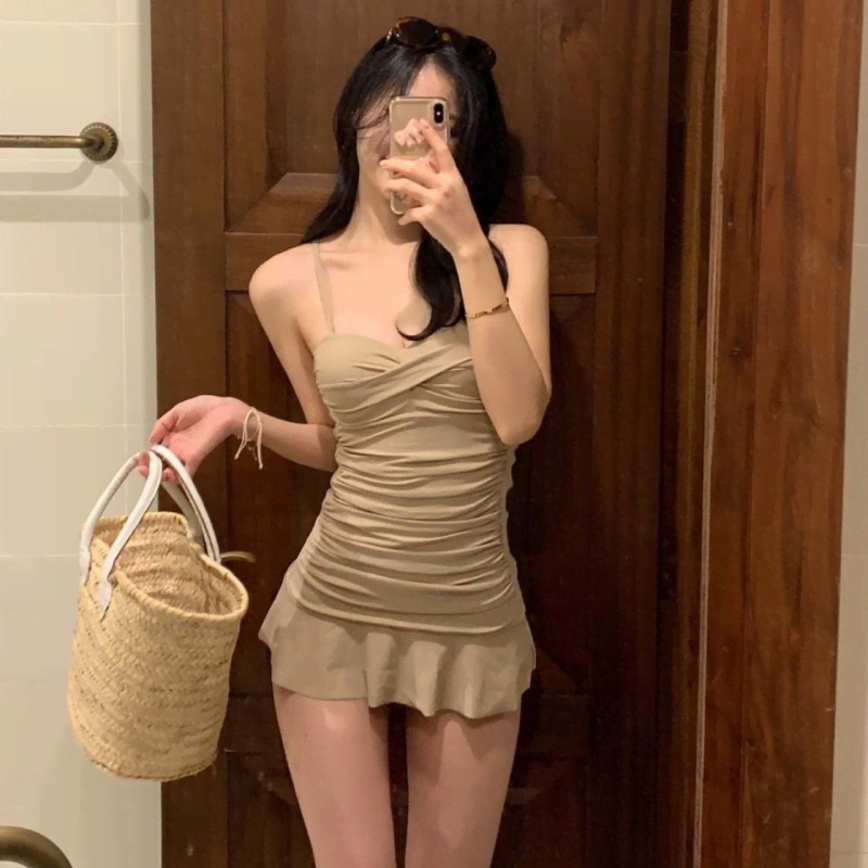 새로운 스타일의 배를 커버하고 슬림해 보이는 크로스 푸쉬업 섹시한 서스펜더 힙 커버 러플 스커트와 레깅스 여성용 원피스 수영복스토어 가기