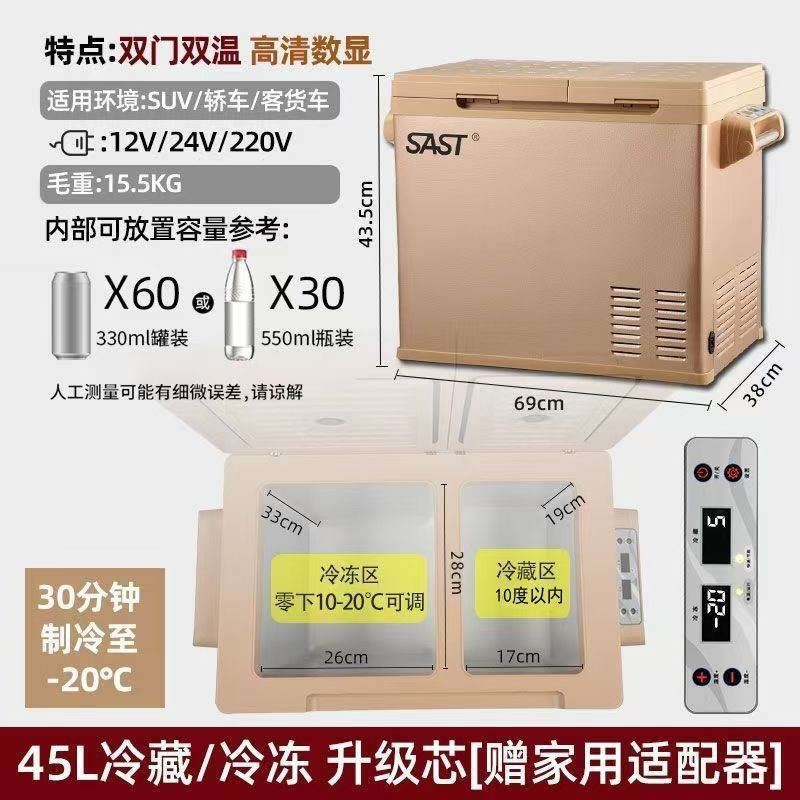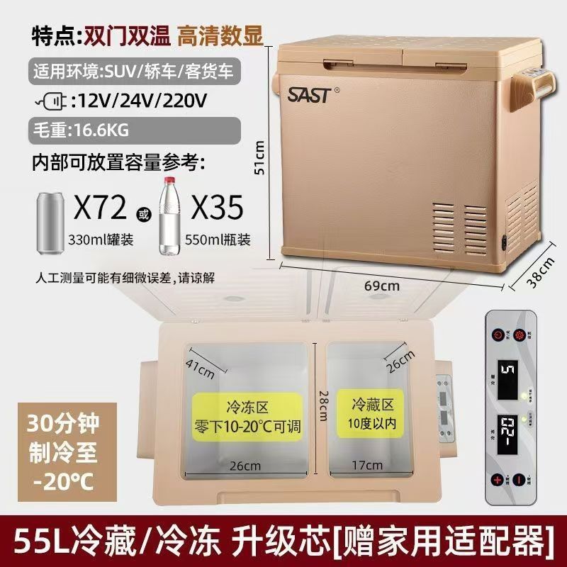 자동차 냉장고, 트럭 냉장고, 자동차 및 가정용 겸용 냉장고, 듀얼 드라이브, 듀얼 챔버, 12V24V220V 냉동 및 냉장, 크로스보더스토어 가기