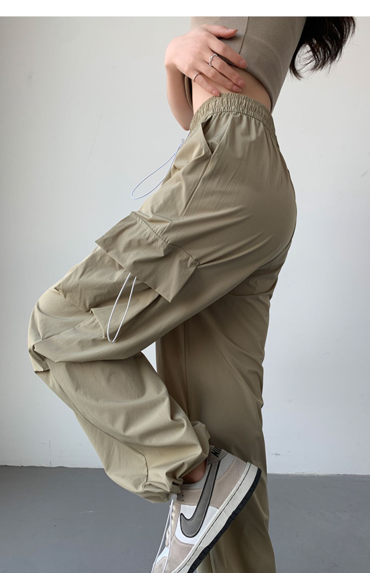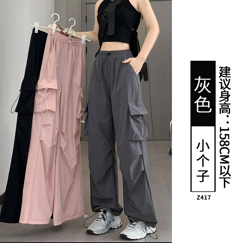 여성용 속건성 작업복 여름 얇은 2025 새로운 느슨한 넓은 다리 작은 야외 등산 스포츠 바지