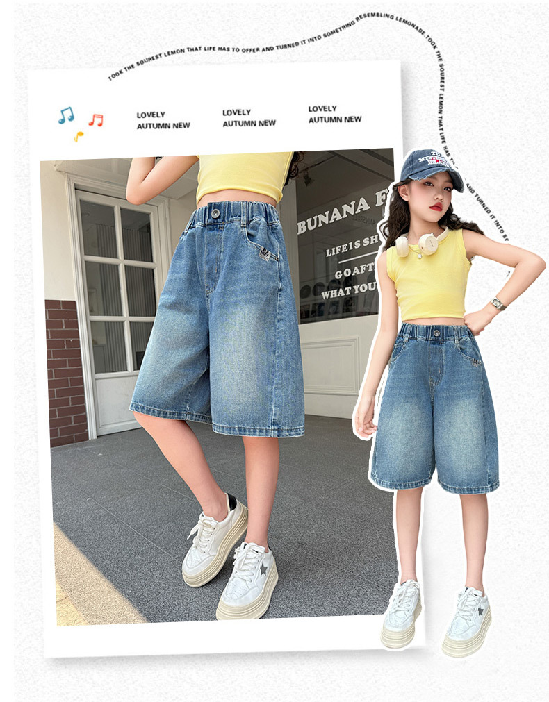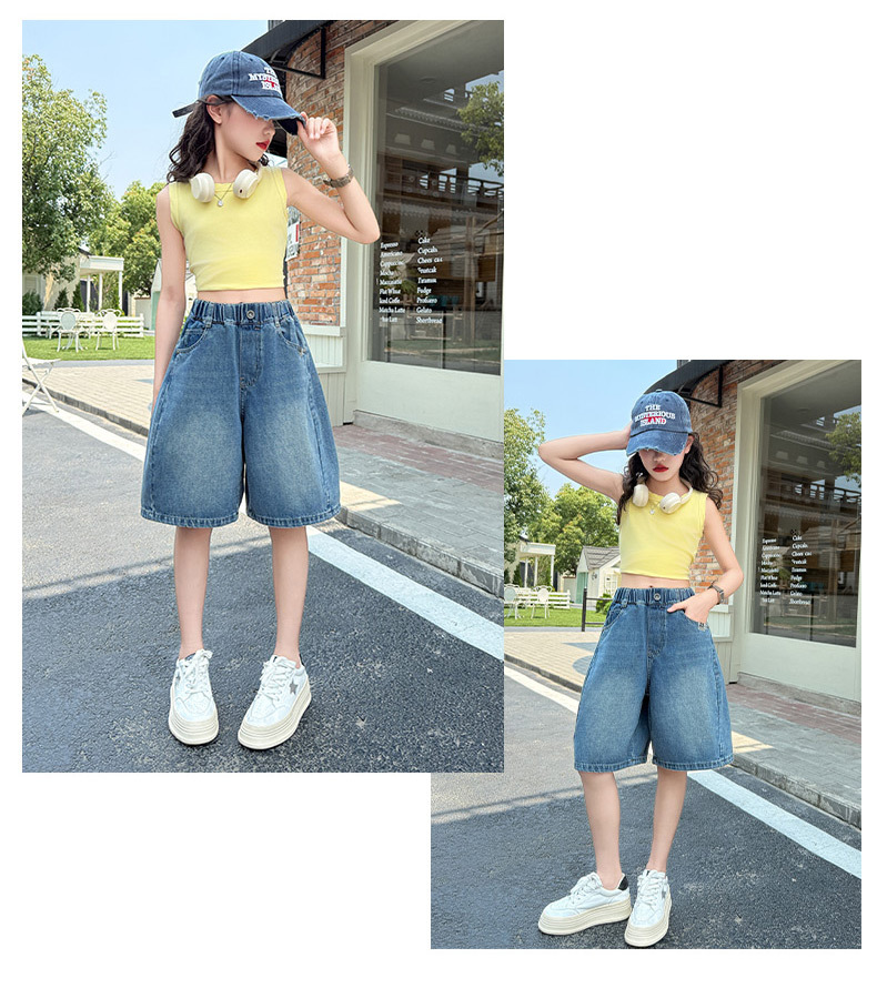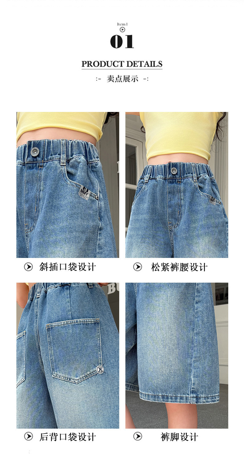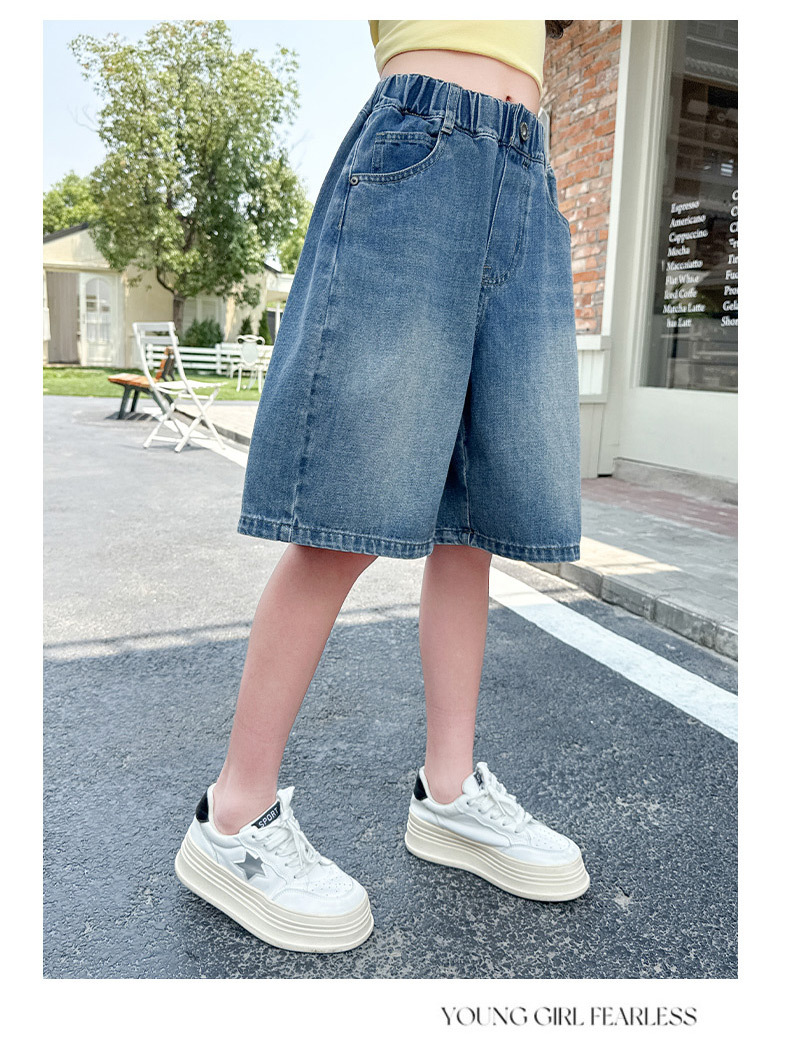 여아 데님 반바지 여름 2025 새로운 아동용 다용도 와이드 팬츠 중대형 아동용 얇은 루즈한 중간 바지 아동복스토어 가기