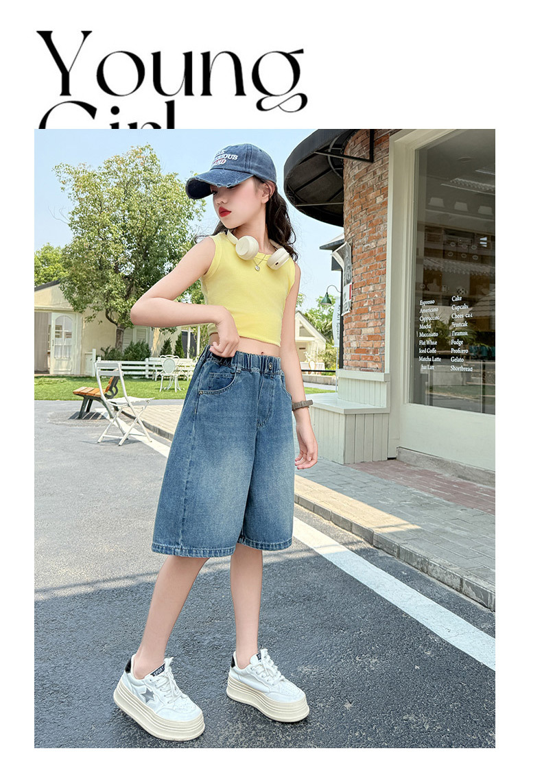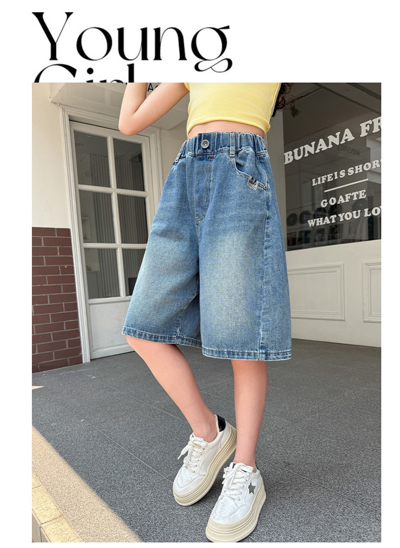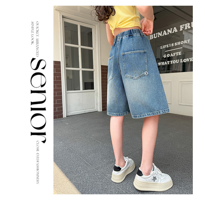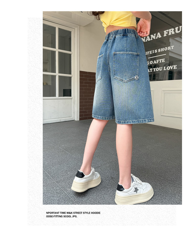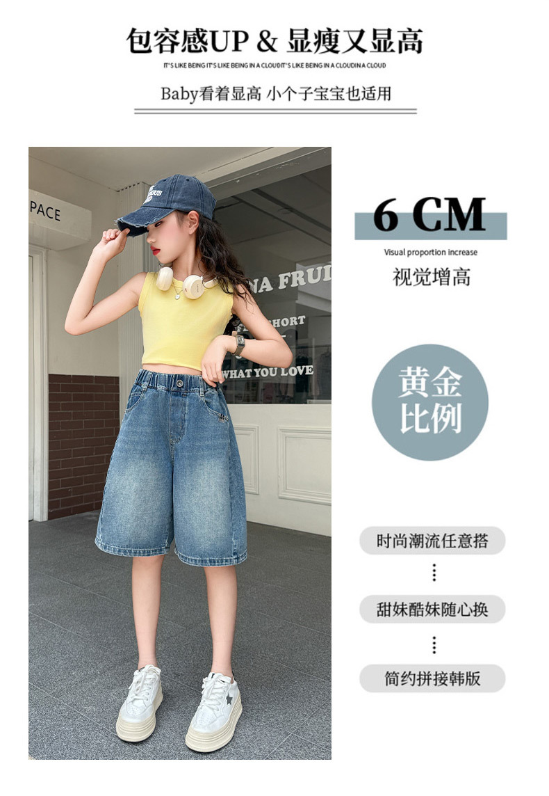 여아 데님 반바지 여름 2025 새로운 아동용 다용도 와이드 팬츠 중대형 아동용 얇은 루즈한 중간 바지 아동복스토어 가기