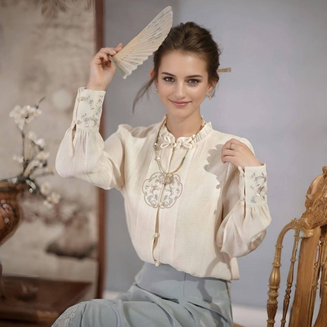 2026 중국풍 자수, 민족풍 꽃무늬 원형 천 패치, 성인 및 아동 의류 장식 패치, 자수, 중국풍 트렌드스토어 가기