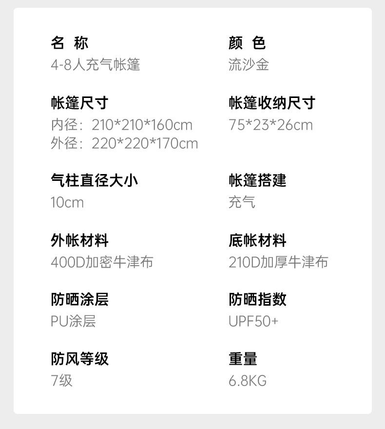 • 6.3 평방 미터 단일 도어 단일 채광창 210D 옥스포드 천