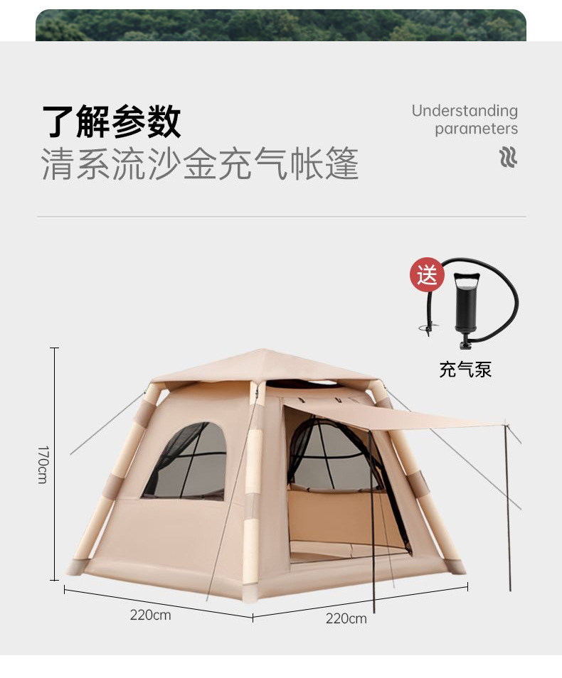 • 팽창식 텐트(수동 공기 펌프 포함) + 방습 매트