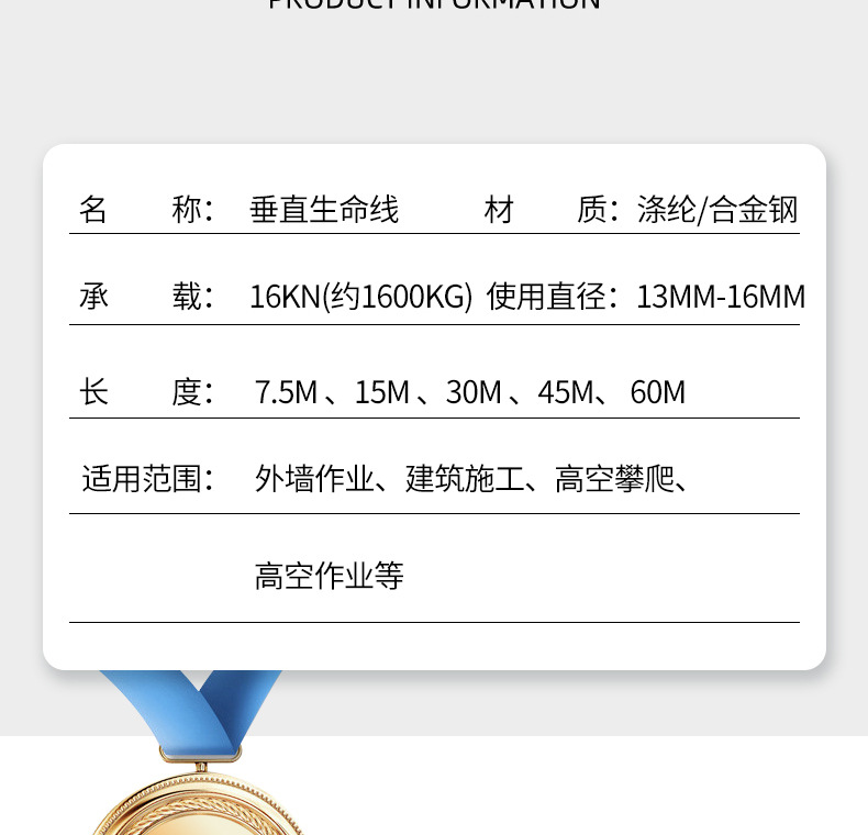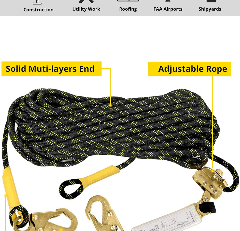 보조 안전 로프가 있는 국경 간 고공 작업 수직 생명 라인 외벽 청소