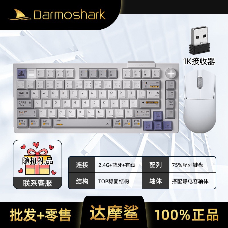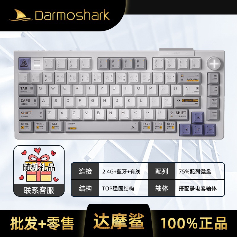 Darmoshark EC75 기계식 키보드 및 마우스 세트 유선 무선 Bluetooth 3 모드 게임용 키보드 및 마우스스토어 가기
