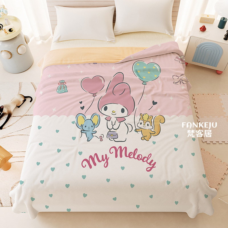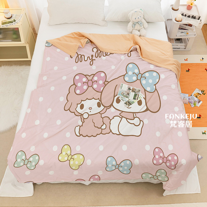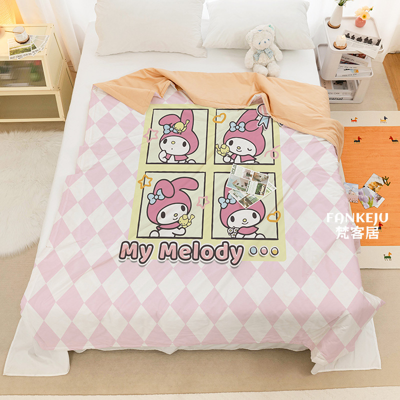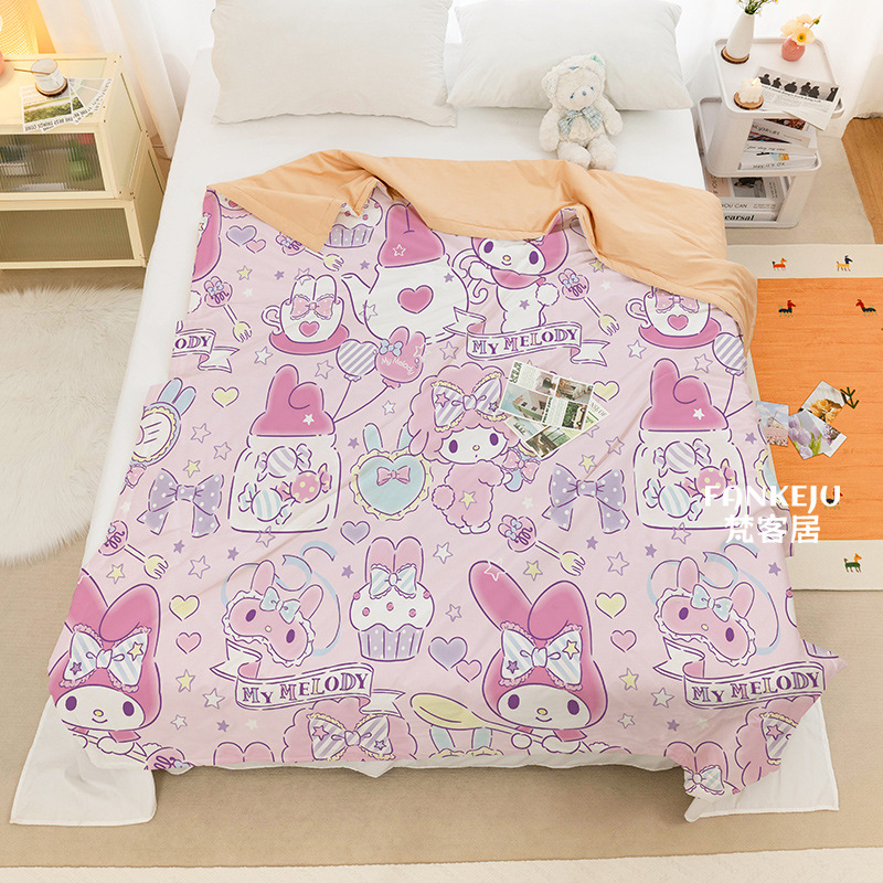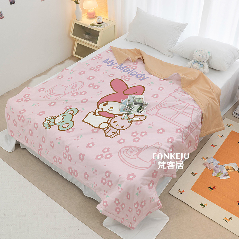 멜로디 만화 면화 어린이 에어컨 이불 여름 싱글 기숙사 소녀 하트 여름 시원한 얇은 이불 세탁 가능하고 통기성이 있음스토어 가기