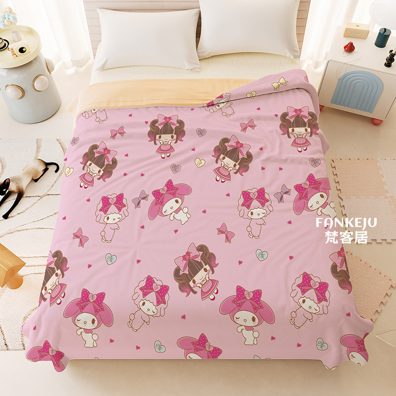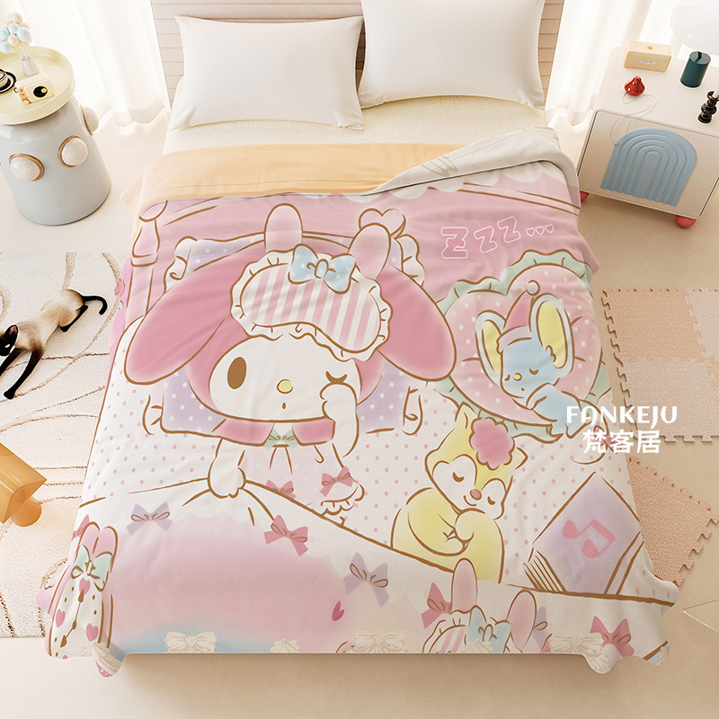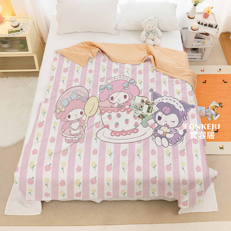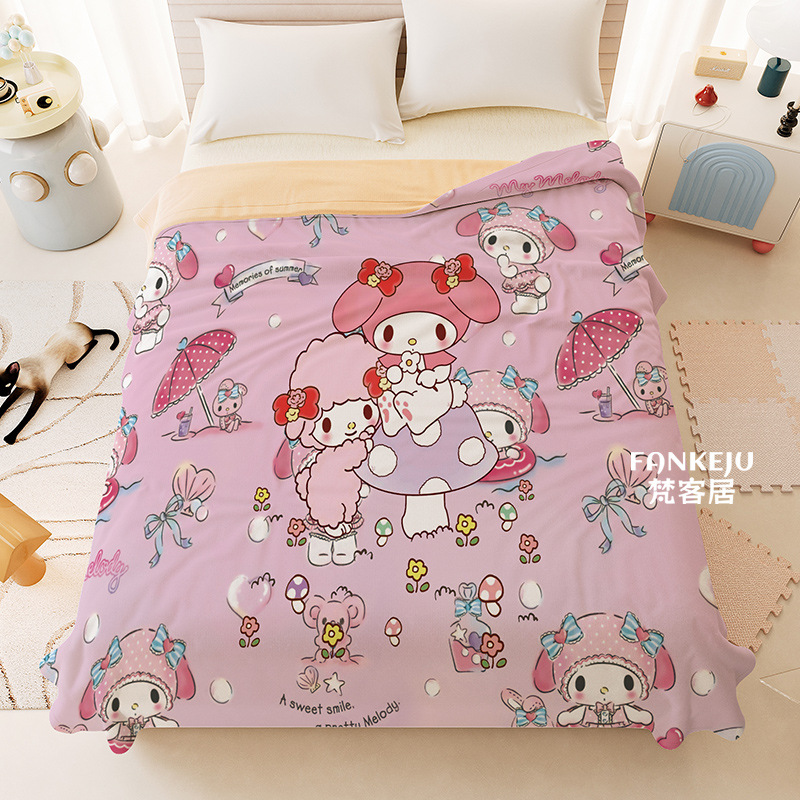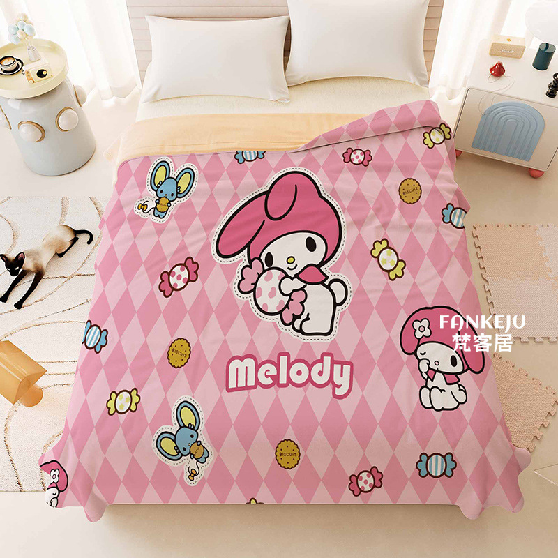 멜로디 만화 면화 어린이 에어컨 이불 여름 싱글 기숙사 소녀 하트 여름 시원한 얇은 이불 세탁 가능하고 통기성이 있음스토어 가기