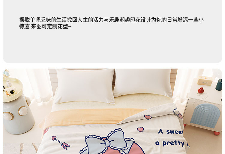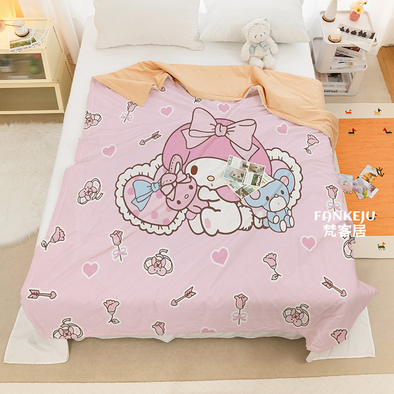 멜로디 만화 면화 어린이 에어컨 이불 여름 싱글 기숙사 소녀 하트 여름 시원한 얇은 이불 세탁 가능하고 통기성이 있음
