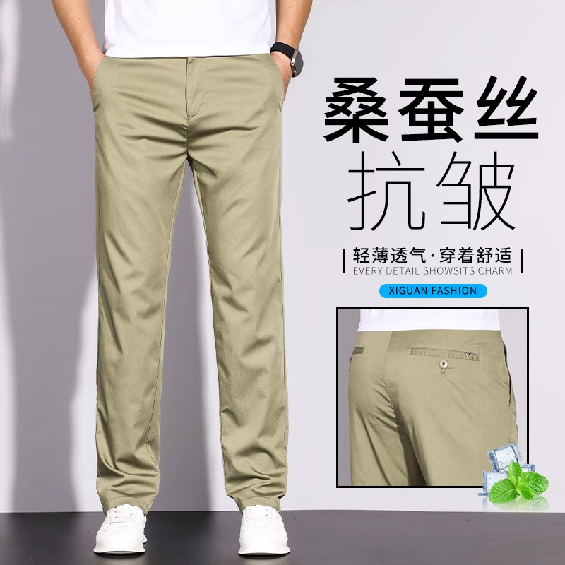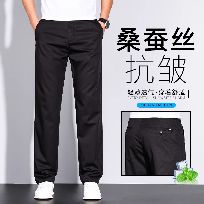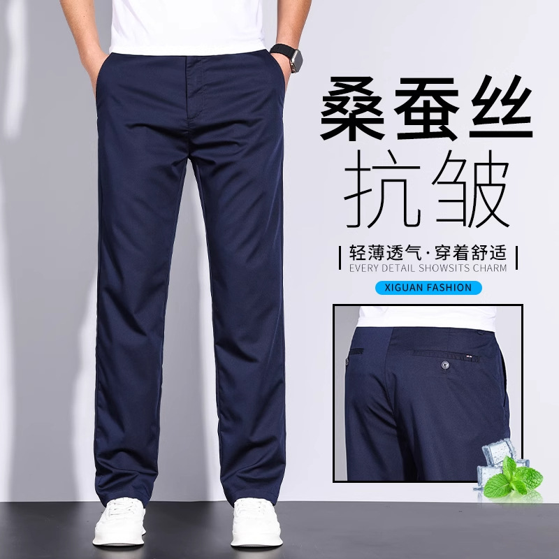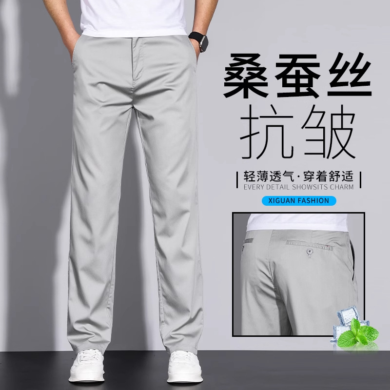 【뽕나무 실크 주름방지】고급 남성 캐주얼 팬츠 여름용 초박형 먼지방지 아이스 실크 비즈니스 롱 팬츠 남성용스토어 가기
