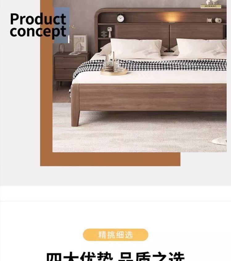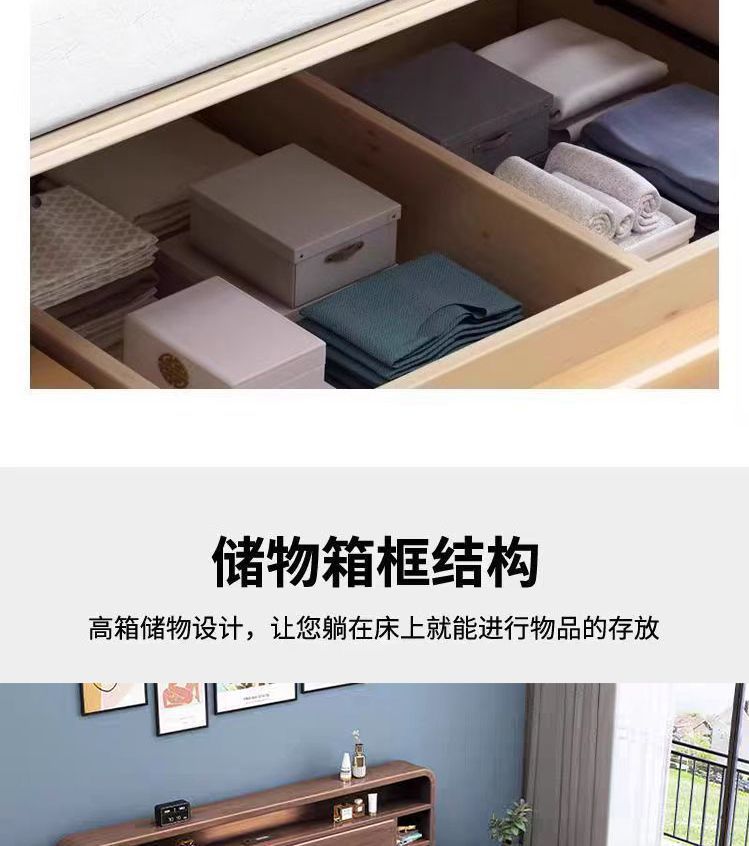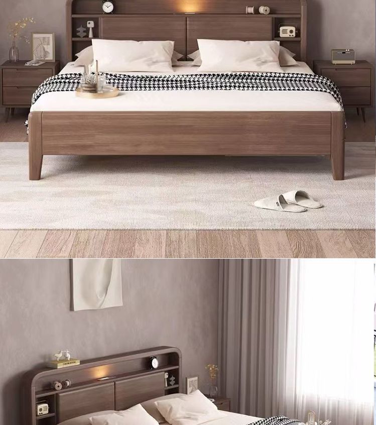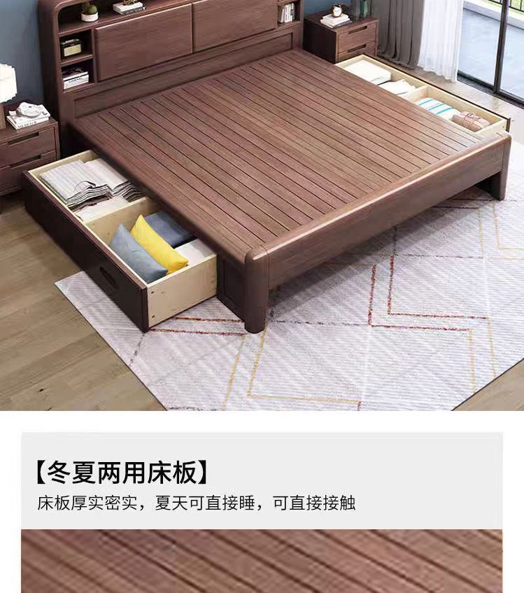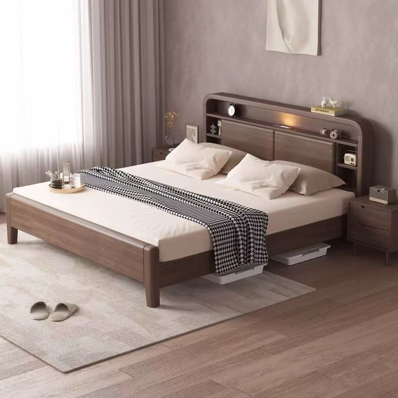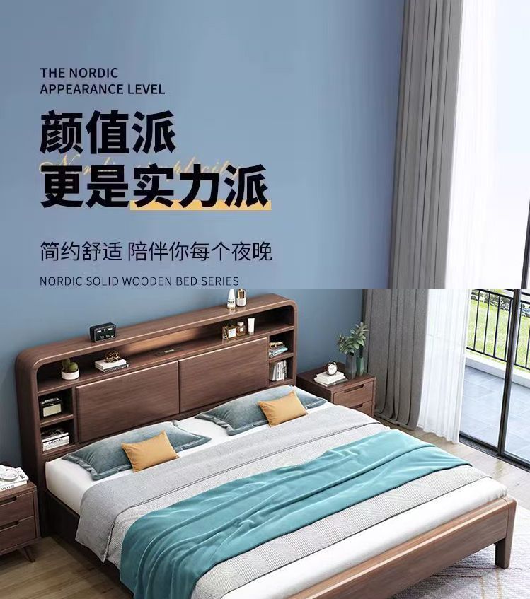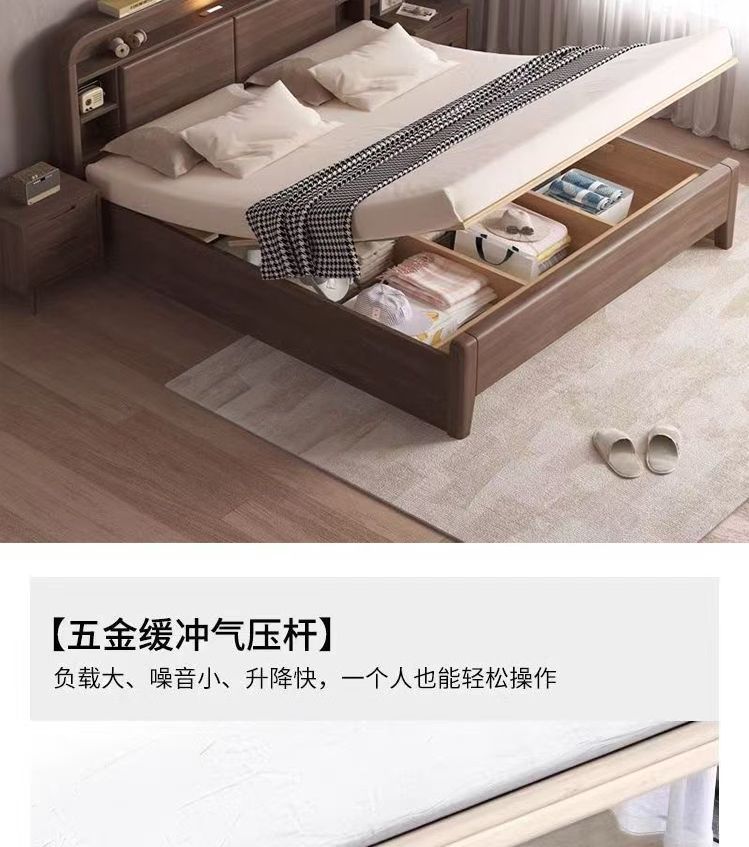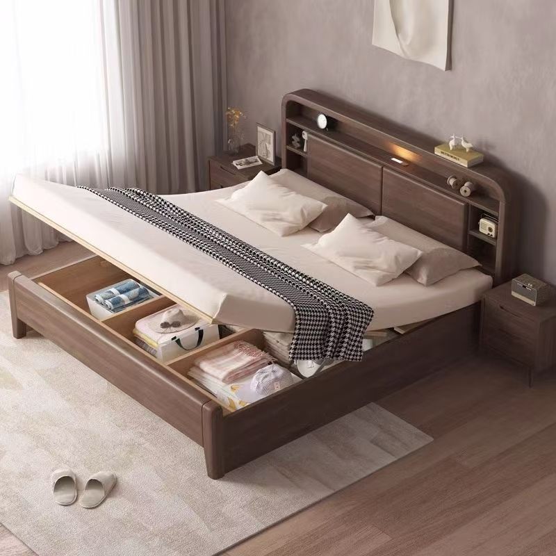 홈 마스터 침실 호두나무 침대 북유럽 모던 미니멀리스트 수납 침대 1.38m 하이박스 더블 침대 수납 웨딩 침대스토어 가기