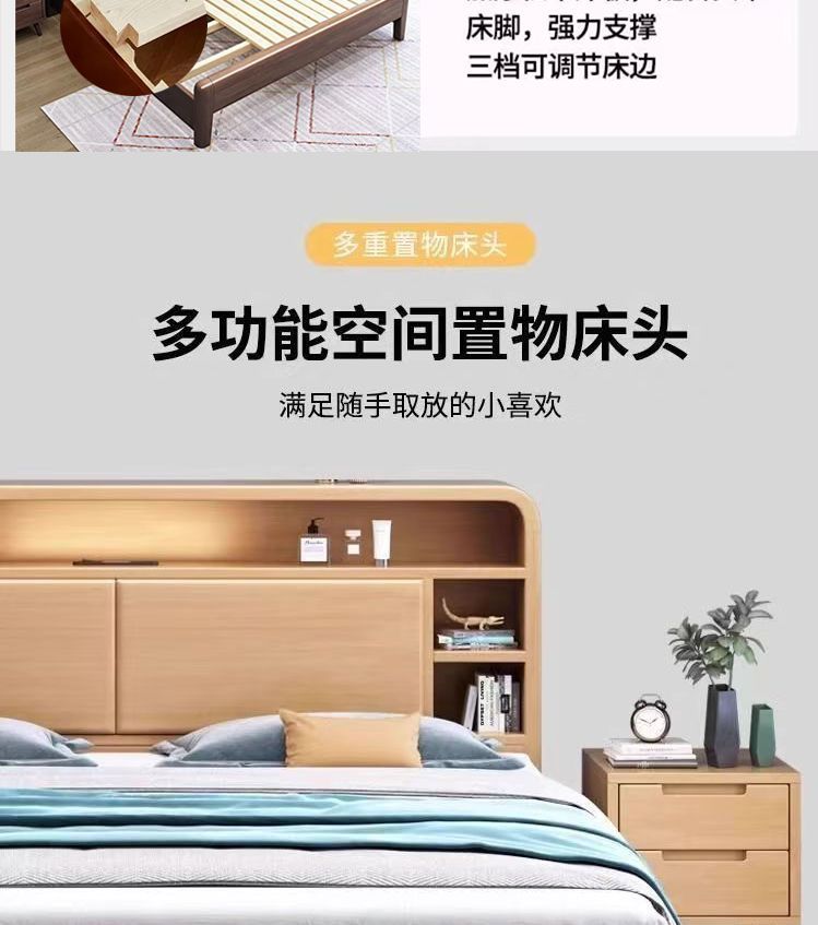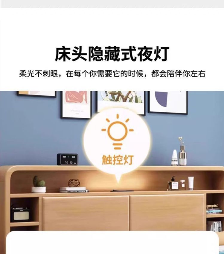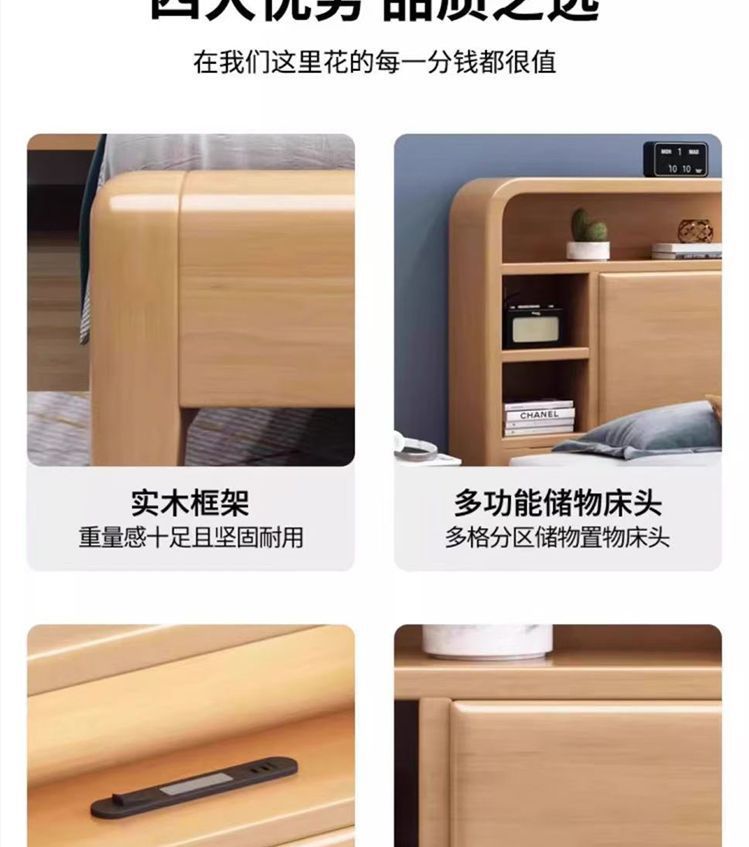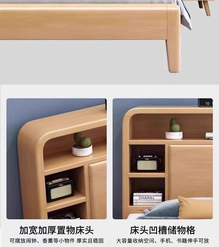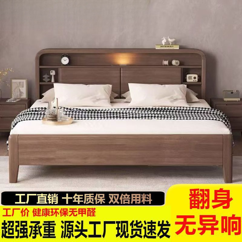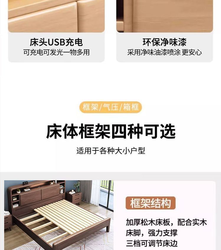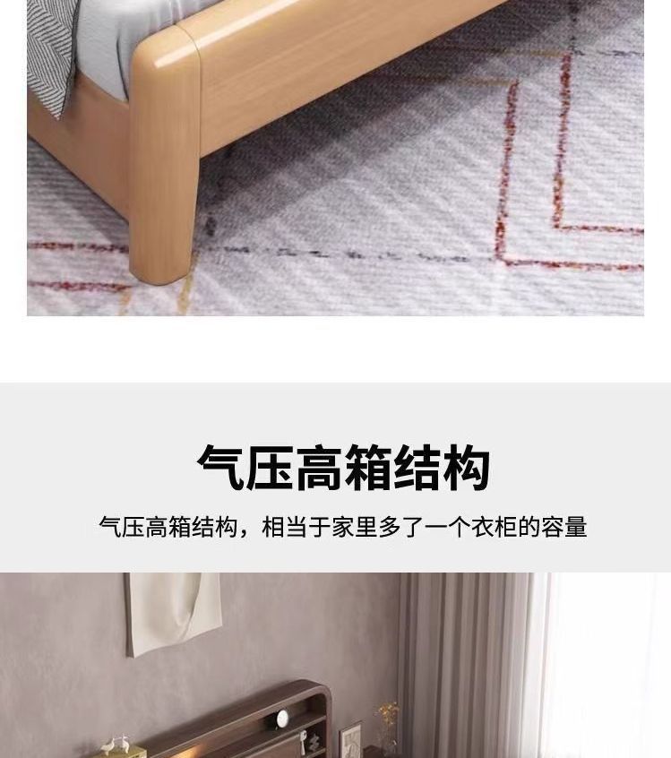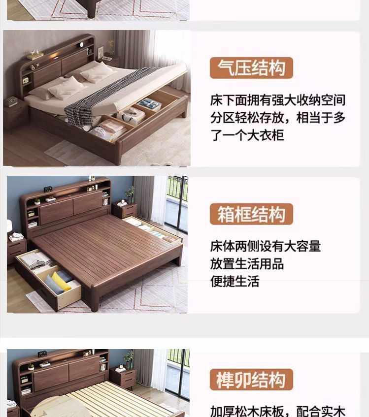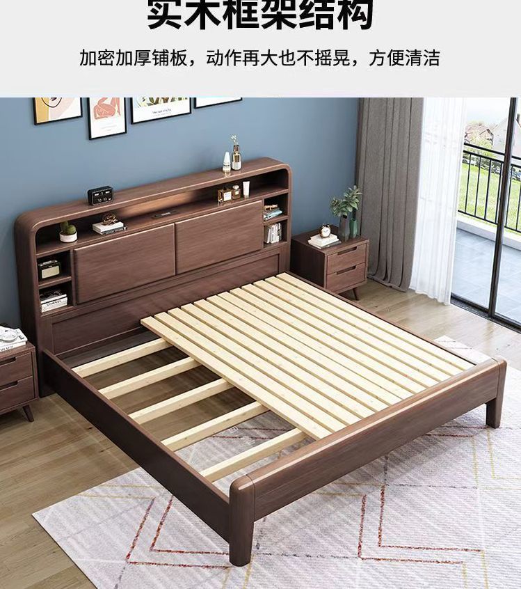 홈 마스터 침실 호두나무 침대 북유럽 모던 미니멀리스트 수납 침대 1.38m 하이박스 더블 침대 수납 웨딩 침대스토어 가기