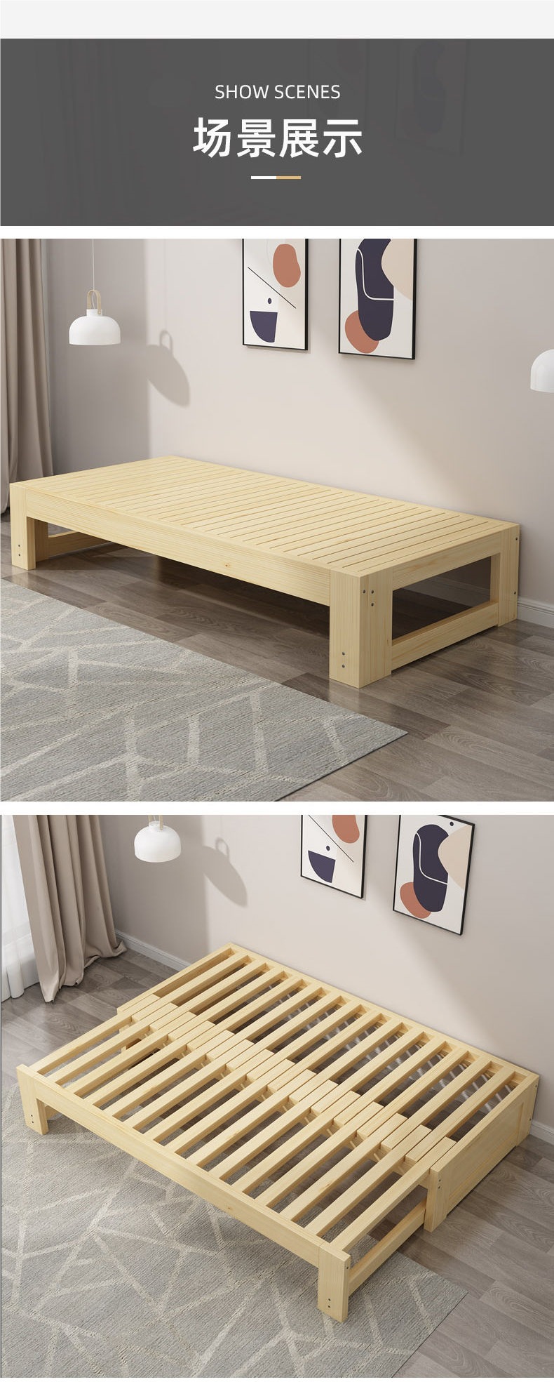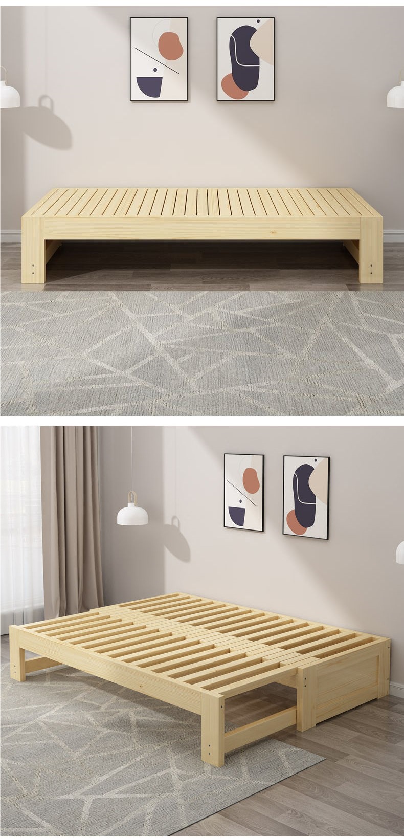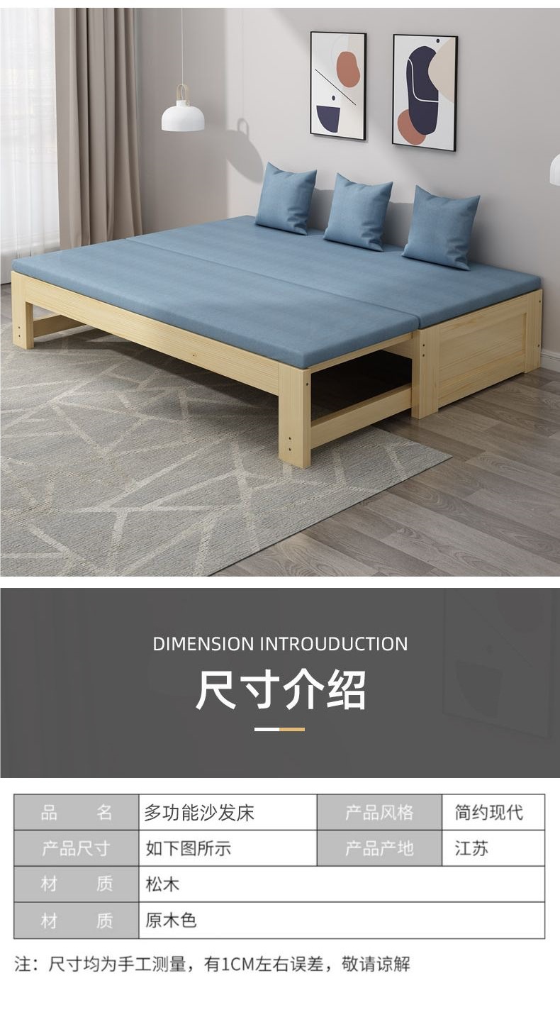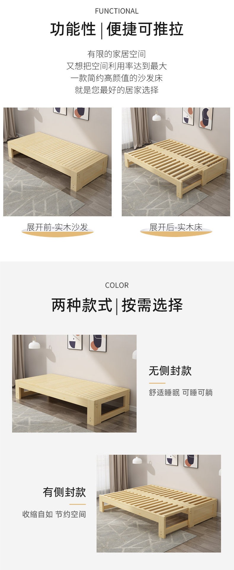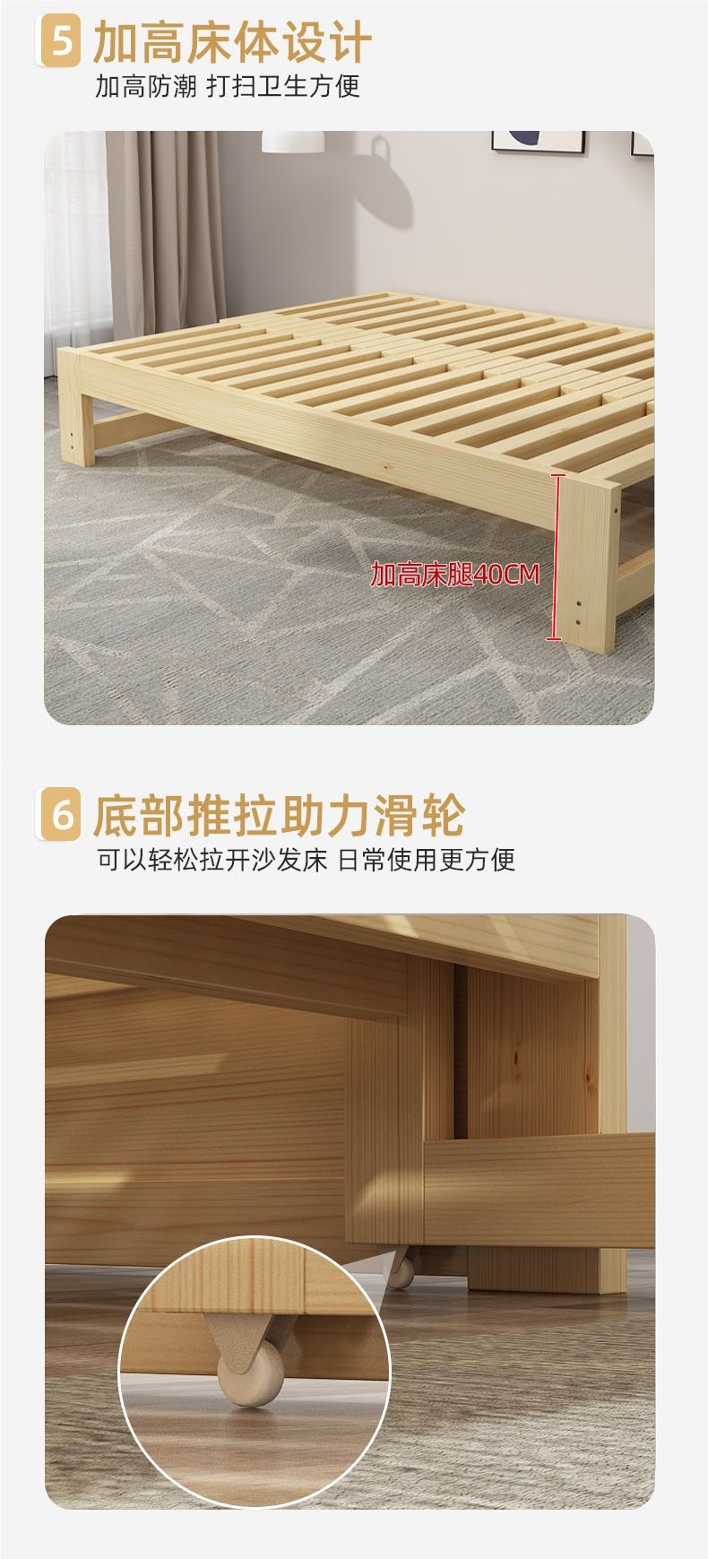 접이식 소파 베드 이중 목적 간단한 거실 작은 아파트 로그 스타일 다기능 전체 단단한 나무 개폐식 임시 숙박 침대스토어 가기
