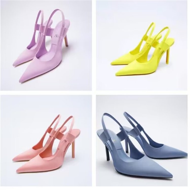 ZA 여름 신상 여성화 블루 슬링백 슈즈 포인티드 토 라이트 스타일 하이힐 여성용 백 스트랩 스틸레토 샌들스토어 가기