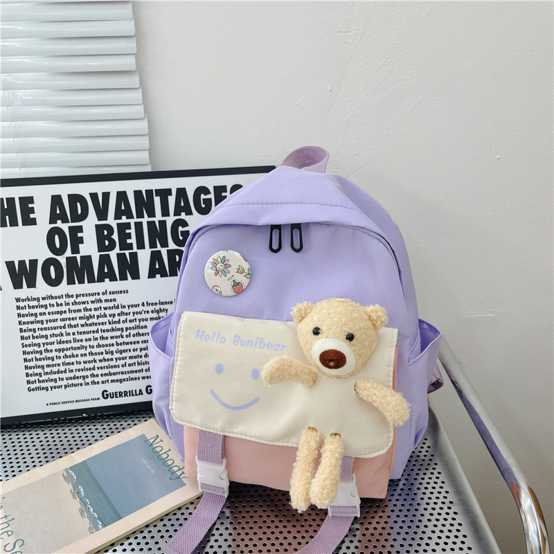 2025 새로운 어린이 만화 귀여운 곰 접합 배낭 유치원 소녀 패션 캐주얼 배낭 도매