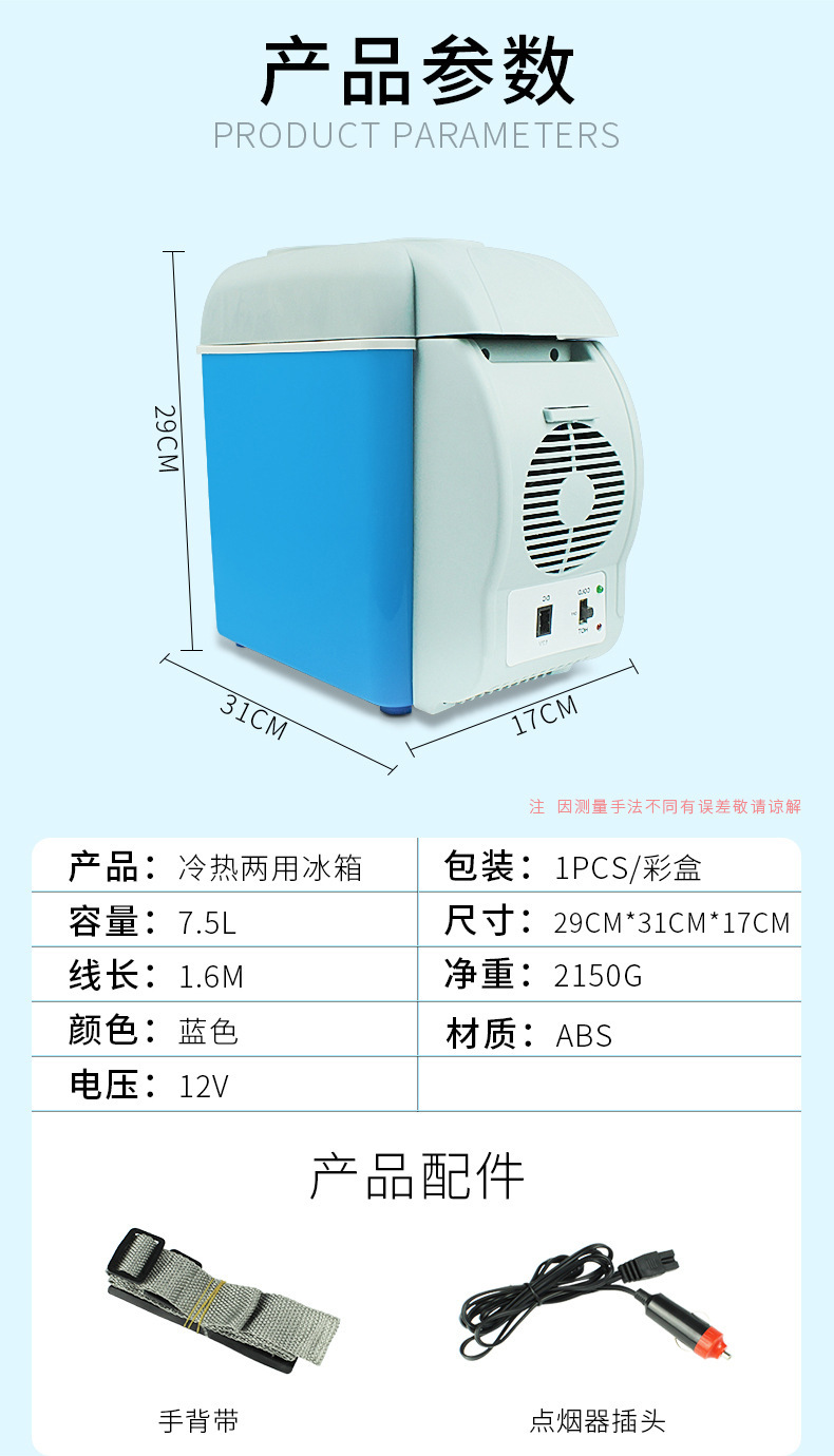 자동차 소형 냉장고 7.5L 미니 냉장고 자동차 냉난방 상자 자동차 가전 제품 휴대용 자동차 냉장고