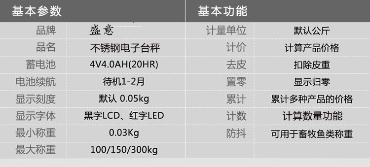모든 스테인레스 스틸 전자 저울 방수 저울 100kg 150kg 300kg 가격 저울 계산 저울 산업용 상업용 저울