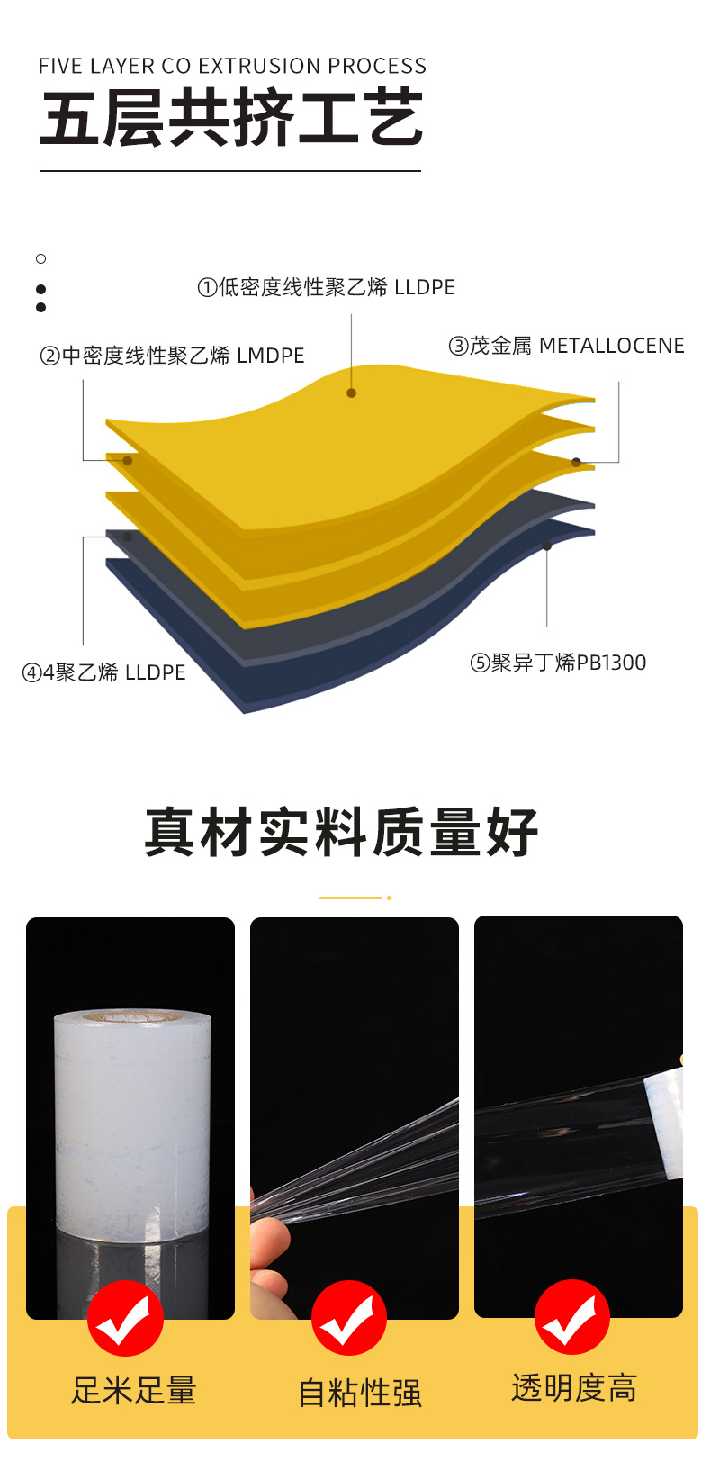 PE 소형 스트레치 필름, 테이크아웃 포장용 필름, 전선용 산업용 보호 필름, 접목 포장용 필름, 고탄성, 고점착력