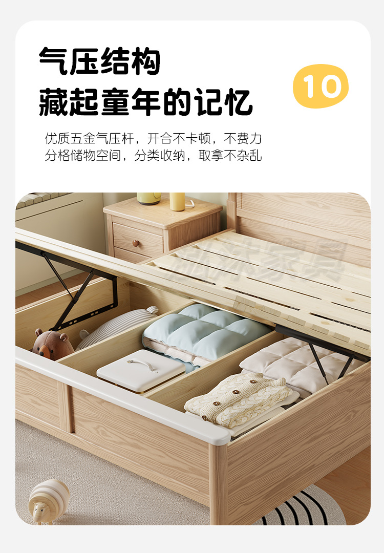 • 공압 구조(모두 원목 상자) + 침대 옆 탁자 1개